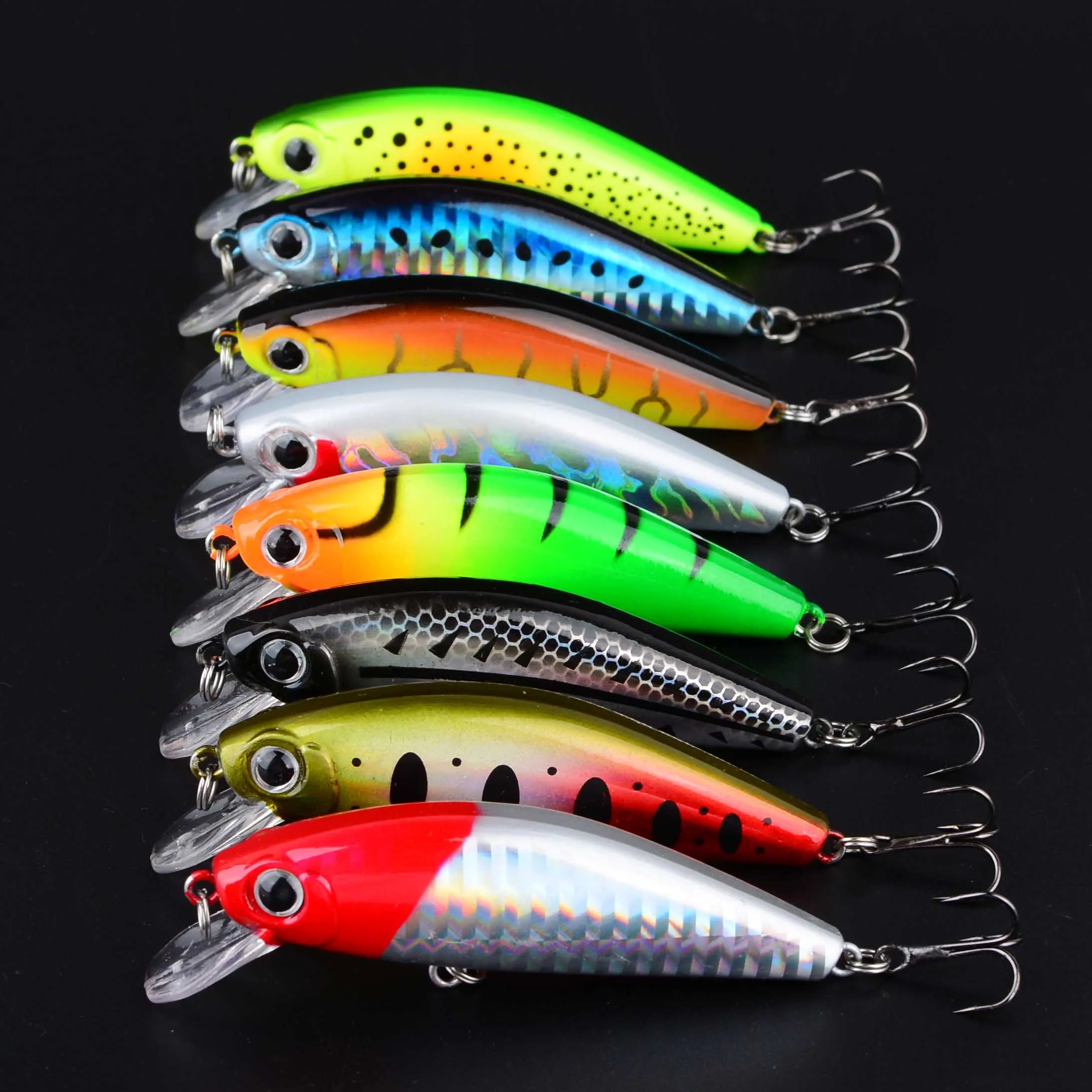 8 Uds Minnow Señuelos de Pesca Wobblers para curricán Crankbaits cebos duros artificiales para pesca de lubina carpa