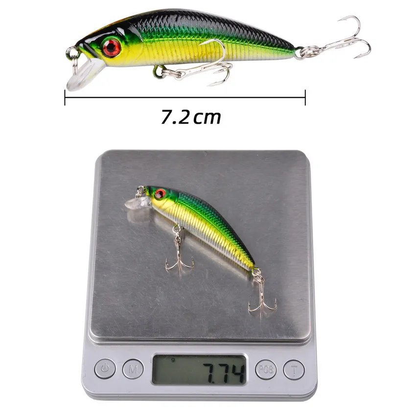 8 unids/set ojos 3D cebo de Pesca 72mm 7,5g lubina Minnow señuelos con anzuelos triples Crankbaits duros artificiales Lucio carpa aparejos de Pesca