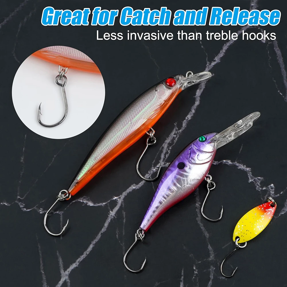 3. Los anzuelos individuales de pesca en línea son adecuados para agua dulce, agua salada, ríos y lagos. Adecuado para todo tipo de señuelos de pesca blandos y duros, como pececillos, crankbaits, señuelos de mano, señuelos de agua superior, poppers, plantillas, etc.