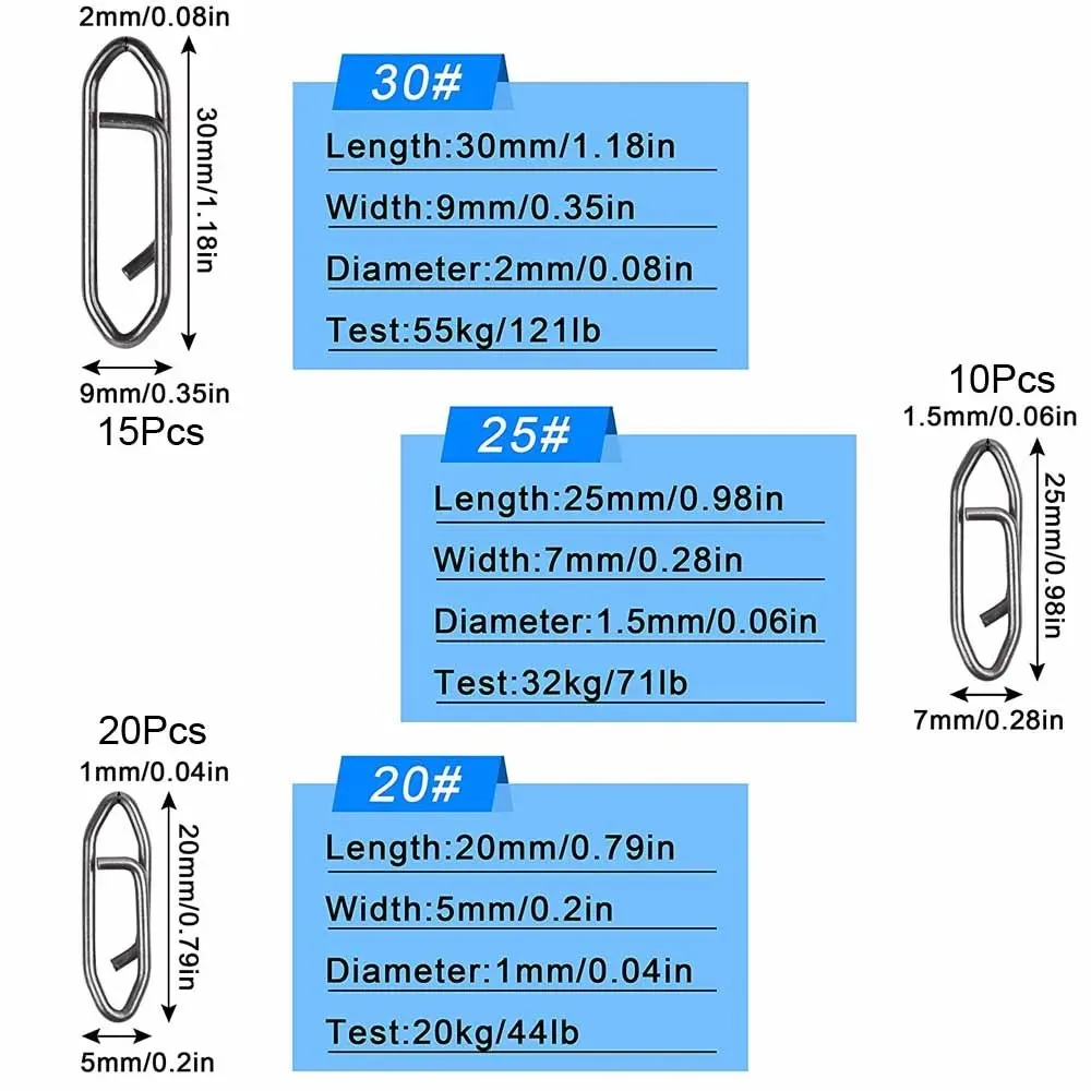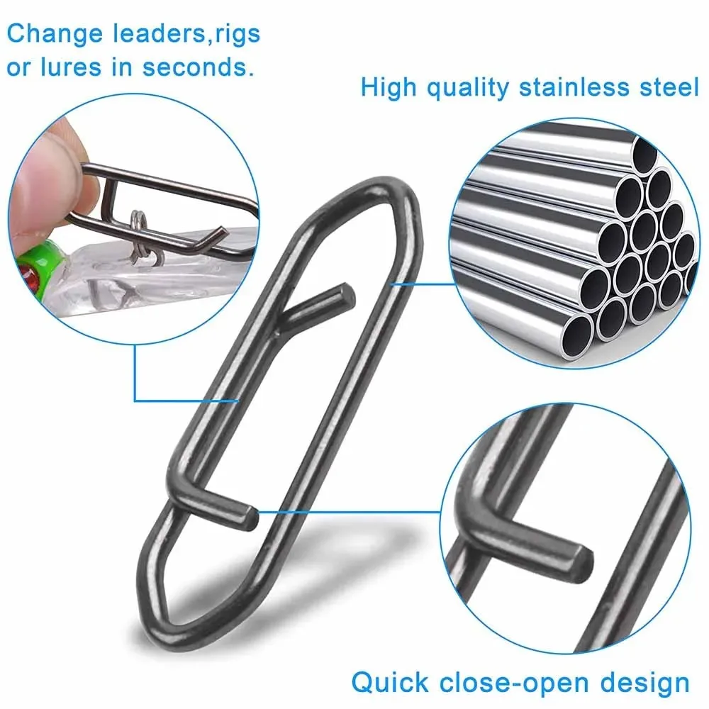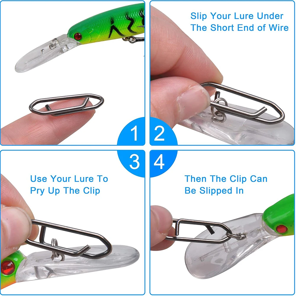 ◢Estos clips le permiten cambiar rápidamente entre señuelos sin tener que retirlos cada vez.Diferentes tamaños pueden conectar diferentes sedales y cebos de pesca.