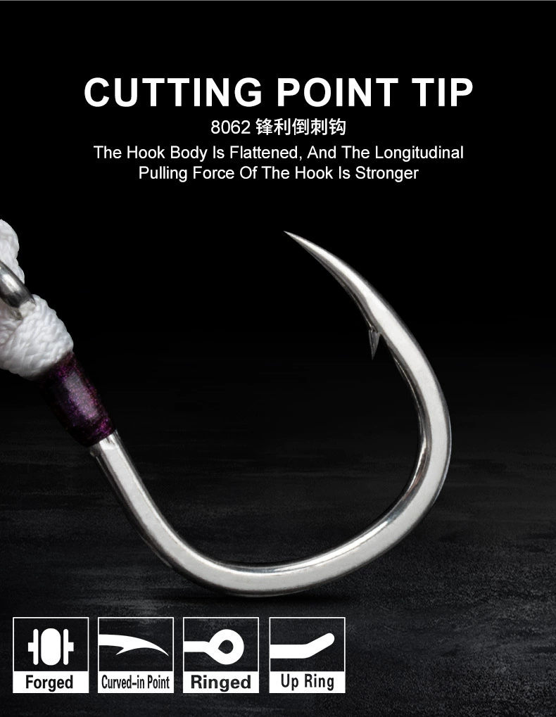 8062 potente gancho de placa de hierro 5x gancho individual anzuelo de objeto pesca en el mar para atún con púas ganchos de placa de hierro de oscilación lenta