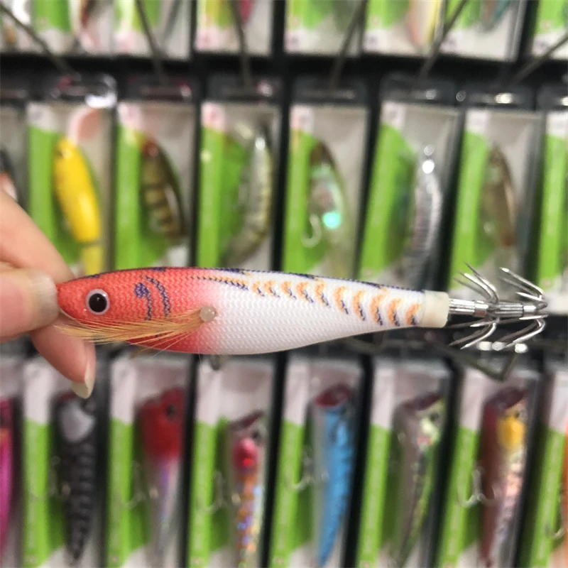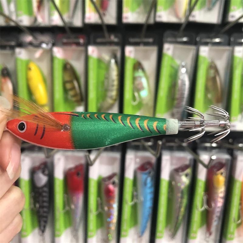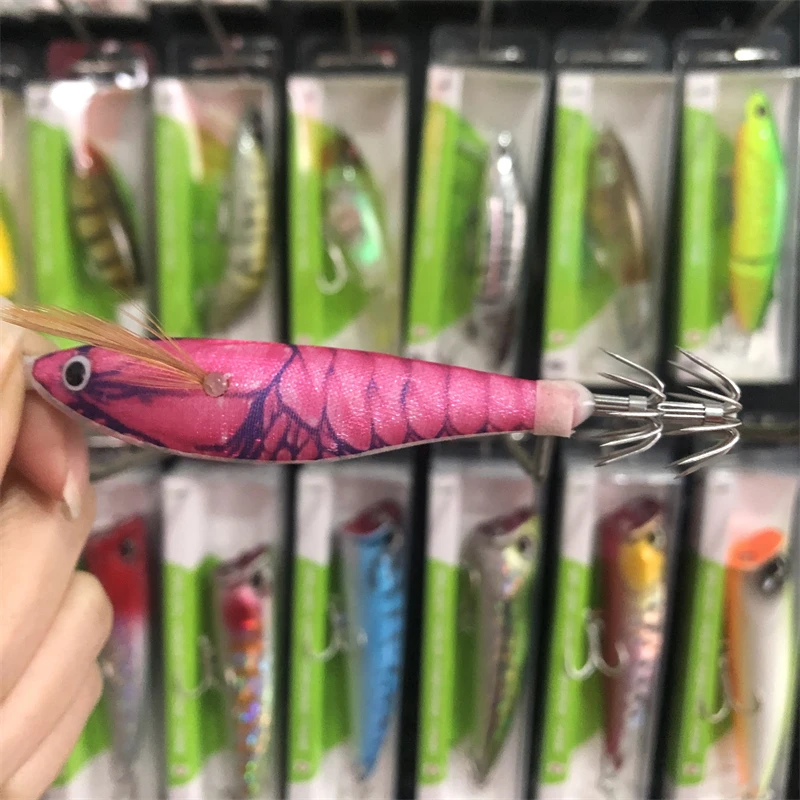 8068 9,5 cm9g1PCS LURETV Japón YAMASHITA mismo estilo camarones de madera TOTO SUTTE R WS95BL anzuelo de calamar cebo luminoso camarones de madera