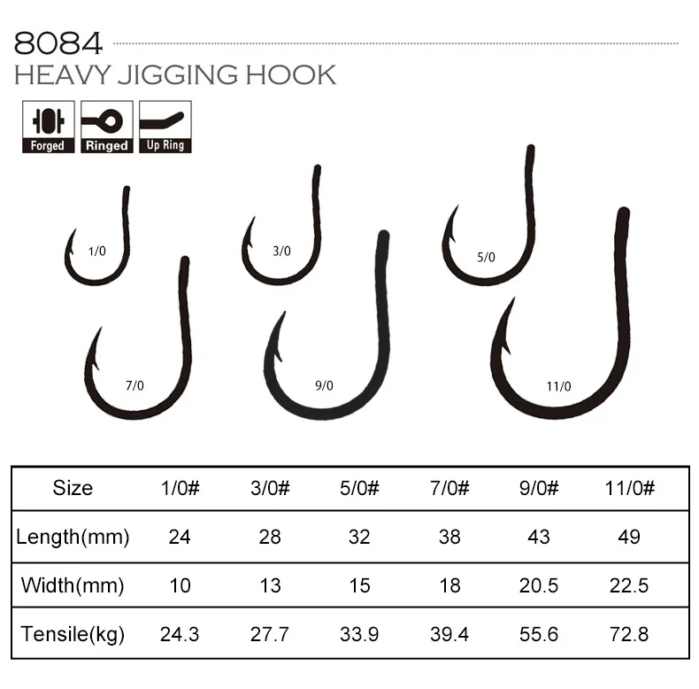 8084 4X 10 piezas/bolsa Anzuelos de Pesca de Acero con Alto Contenido de Carbono, Curvos, con Púas, para Pesca Vertical, Anzuelos Circulares para Atún GT, Pesca Vertical Pesada y Lenta