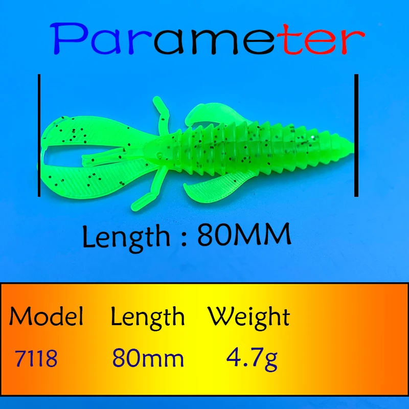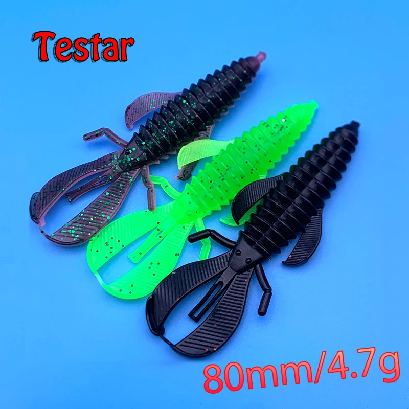80mm4,7g 5 unids/lote Testar señuelo de Pesca langosta suave cebo de cangrejo Wobbler de silicona giratorio aparejos de camarón Swimbait Lucio Pesca