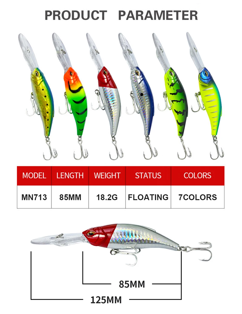Señuelos de pesca flotantes de 8,5 cm, 18.2g, Minnow Wobbler, lanzamiento largo, balanceo profundo, Jerkbait, cebo duro Artificial, trucha, lubina MN713