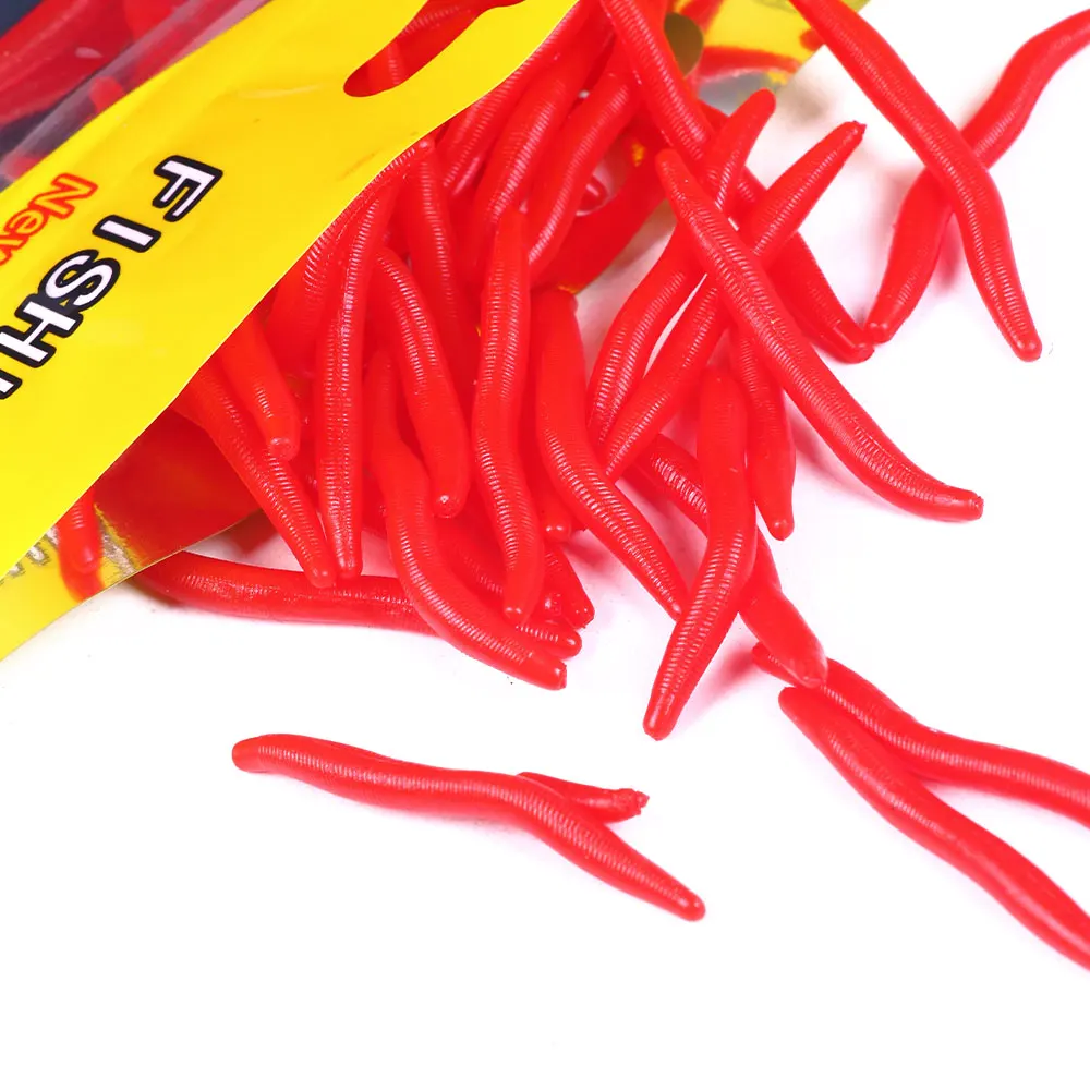 8CM/4CM 1 bolsa/50 Uds. Señuelos blandos depredadores pesca en el mar gusano de tierra de silicona Wobbler cebos falsos carpa trucha pesca de lubina