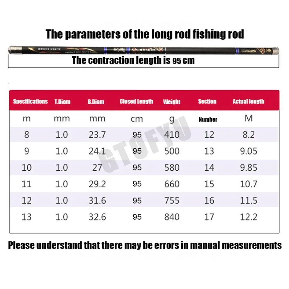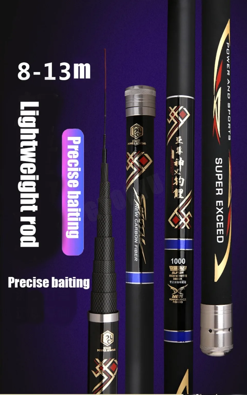 8M-13M Ultralange Hand Pole Koolstofvezel Telescopische Hengel Draagbare Vissen Tenkara Hengel Volledige Kit Hengel Alle Waters