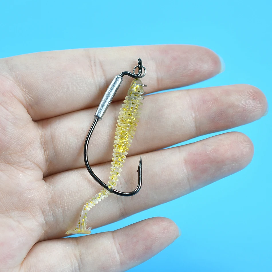 8Pcs Hooks+10Pcs Lock Pin Jig Crank Head Barbed Hooks with Soft Lure Worm Offset Fishhook Spring Lock Pin 1.8g 2g 3g 6g