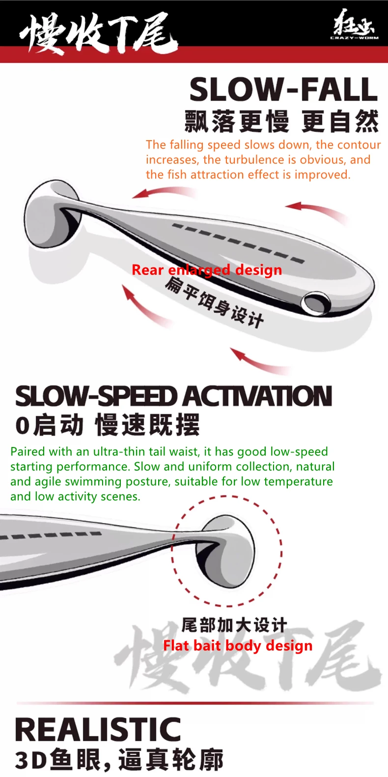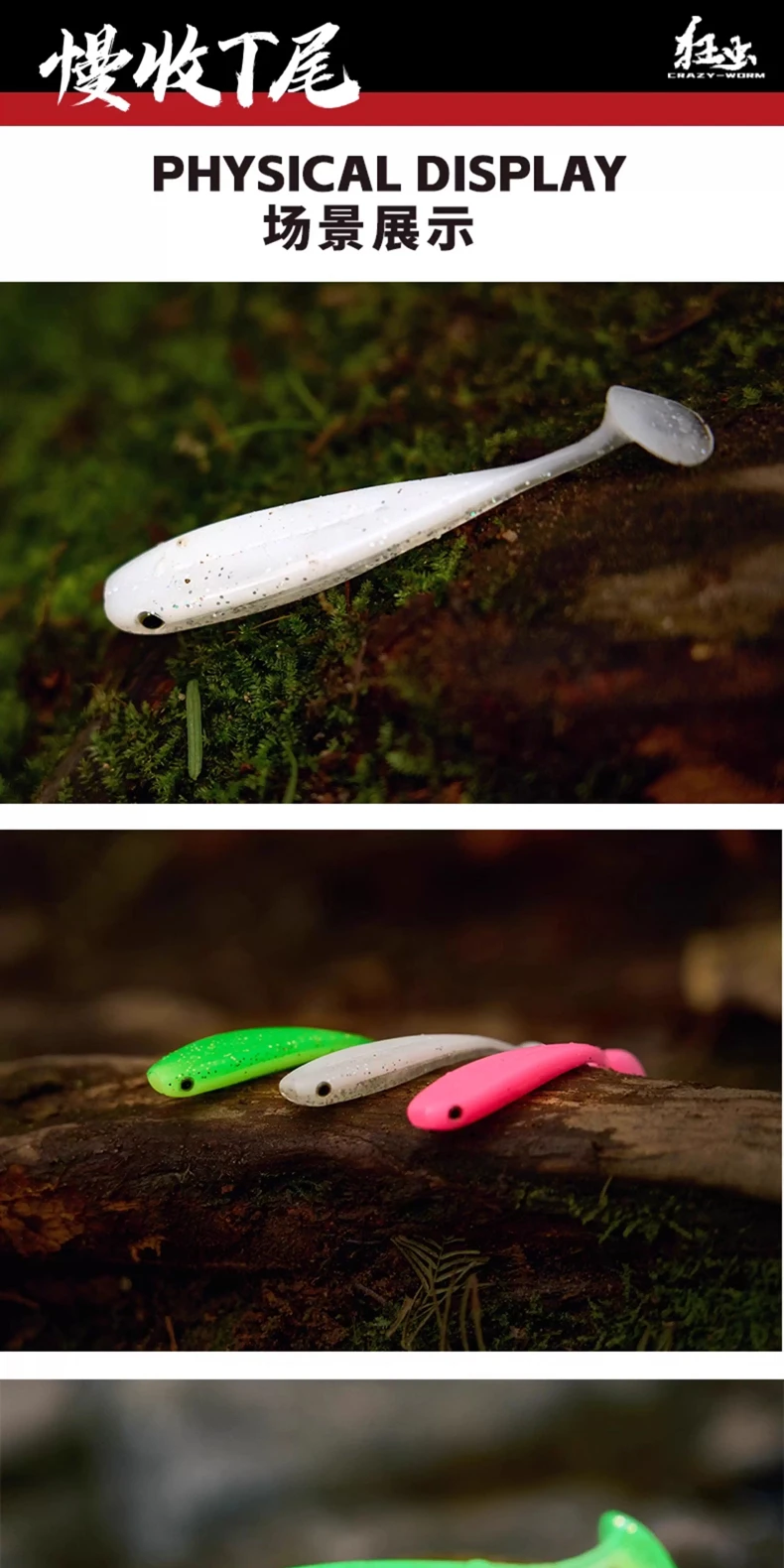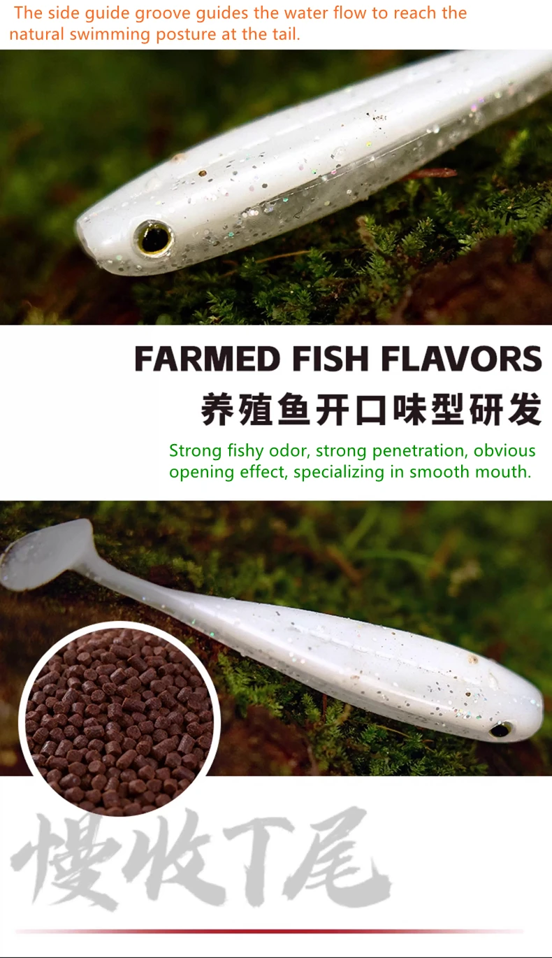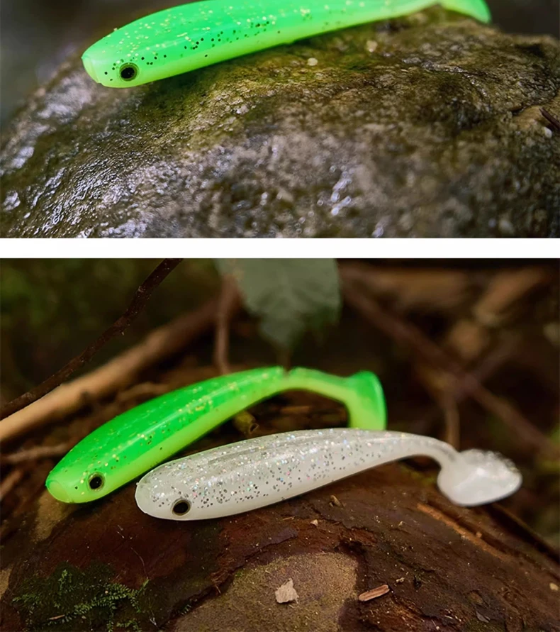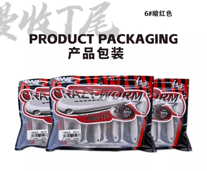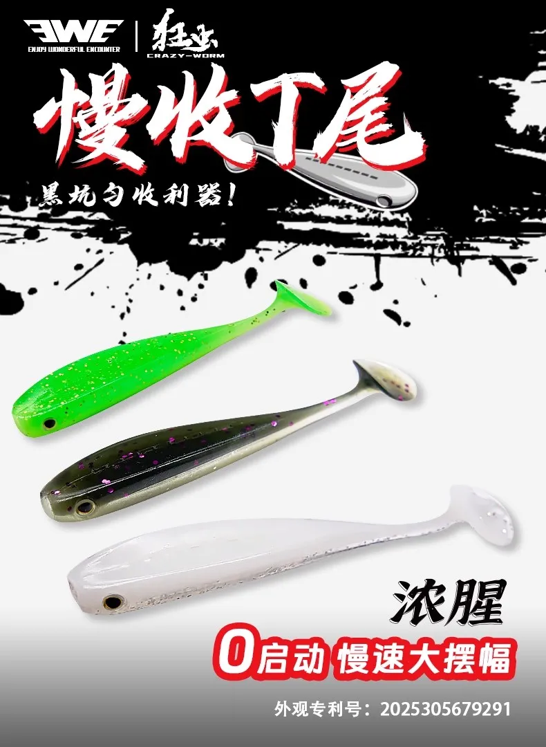 8pcs New EWE Kuangchong Slowly Collect T-tail Soft Bait Zero Start Fishing Lure 67mm/75mm Artificial Wobbler Soft Worm Fake Bait
