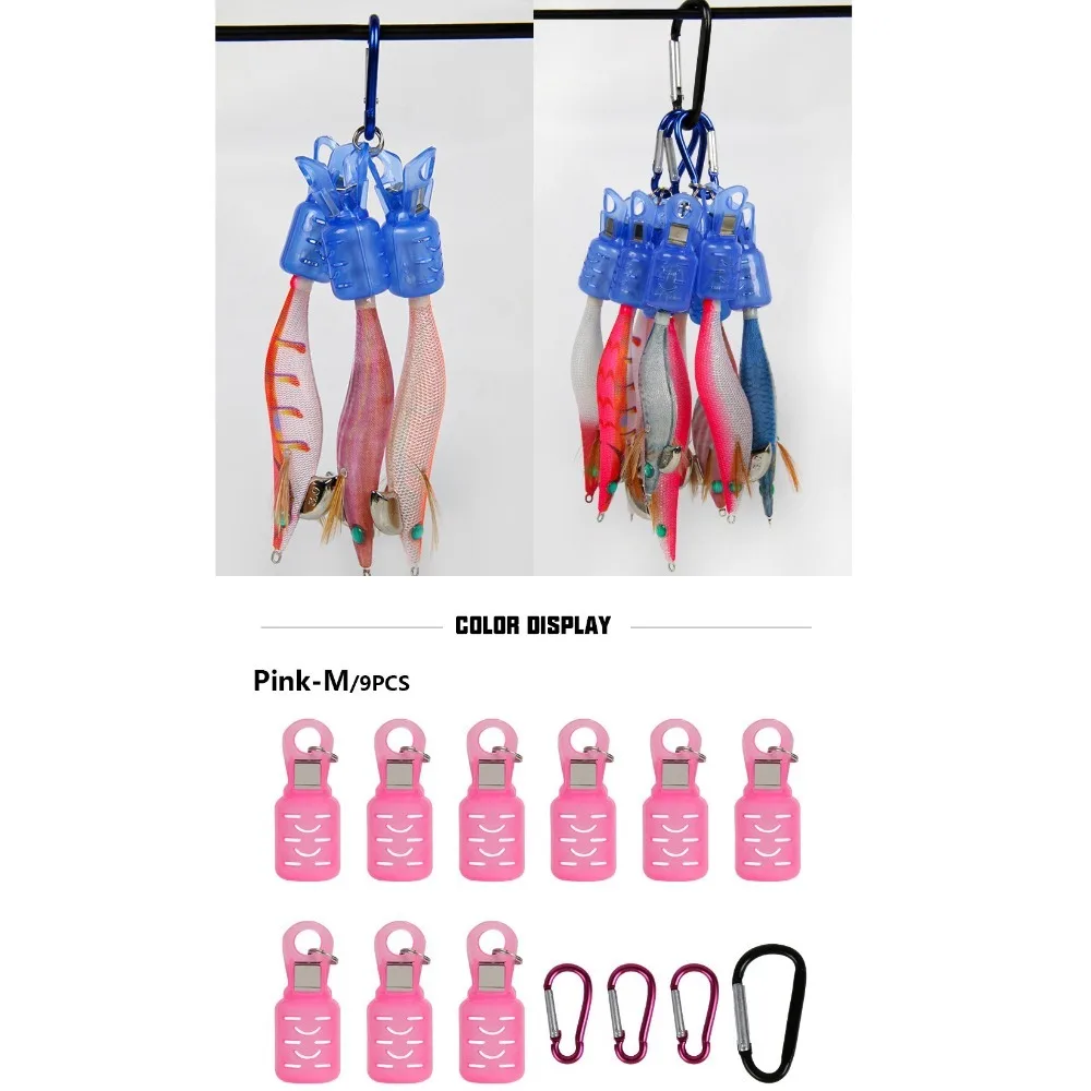 9pcs Squid Jig Hook Cover Anti-Scratch Puncture Wooden Shrimp Hook Cover Storage Case Outdoor Camping Fishing Accessories Tools Name: fish hook storage set Weight: M:3.8g/L:5g Size: m: 5*2cm(1.97*0.79in)/L:5.5*2.5cm(2.17*0.98in) Material:ABS and Metal Description Report Item / Suspicious Activity -Durable Material :Crafted from high-quality wood, this squid jig hook cover is designed to withstand the rigors of outdoor camping and fishing, ensuring long-lasting use. - Anti-Scratch Design :The anti-scratch design of this hook cover prevents damage and extends the life of your fishing hooks, saving you money in the long run. - Versatile Use :Ideal for ocean boat fishing, this hook cover is a versatile addition to your fishing accessories, enhancing your fishing experience. - Compact Storage :With its compact storage case, this hook cover is easy to carry and store, making it a convenient tool for all your fishing needs. - Easy to Use :Designed for user-friendliness, this hook cover is easy to use, making it a must-have tool for any avid fisherman. - High Quantity :This set includes 9 pieces, providing ample supply for all your fishing needs. 1,Hook Protection and Scratch Prevention: Our hook protector features a tightly clamped design, effectively protecting hooks from scratches and preventing collision-induced deformations. Additionally, it safeguards other fishing tools from potential damage caused by sharp hooks, ensuring their longevity and functionality 2,Perfect for Outdoor Fishing: Designed specifically for outdoor fishing, this hook protector is an essential tool for anglers. It opens and closes quickly, providing easy access to hooks when needed. Its small and lightweight design makes it highly portable, allowing you to carry it conveniently during fishing trips 3,High-Quality ABS and Metal Buckle Material: The hook protector is made from high-quality ABS material, which ensures its durability and resistance to impact. The metal buckle further enhances its strength and reliability. This combination of materials guarantees a long service life, even in rugged outdoor conditions 4,Multiple Size Options: We offer two sizes of hook protectors to accommodate different hook sizes and fishing needs. This allows you to choose the appropriate size for your specific fishing equipment, ensuring a snug fit and optimal protection Package Included: 9PCS Hooks Covers (3pcs Carabiner )