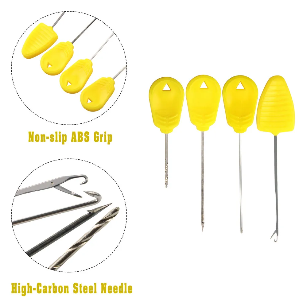 1.Un juego que incluye agujas de cebo para carpa y 5 tapones de cebo para marco, aguja de larguero y aguja de taladro.Fácil de usar y almacenar.