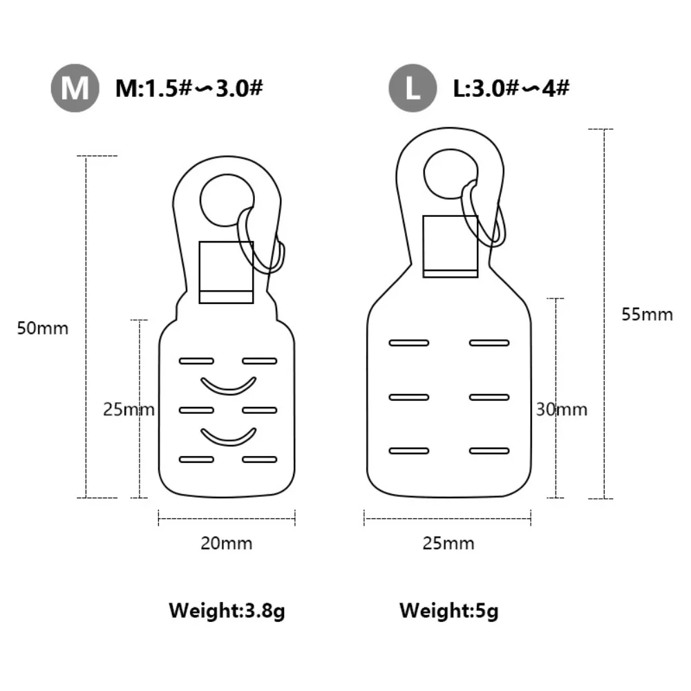 4. Múltiples opciones de tamaño: ofrecemos dos tamaños de protectores de anzuelo para adaptarse a diferentes tamaños de anzuelo y necesidades de pesca.Esto le permite elegir el tamaño adecuado para su equipo de pesca específico, asegurando un ajuste perfecto y una protección óptima.