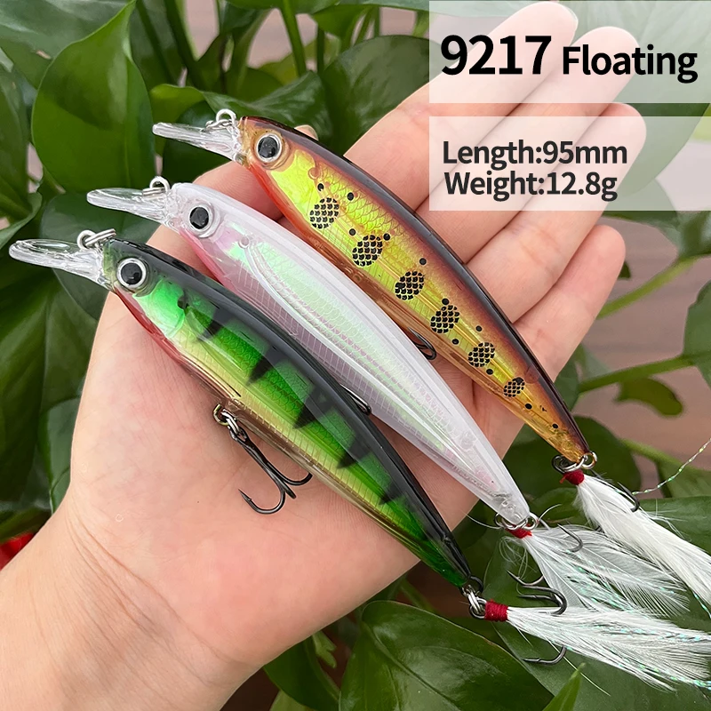95mm 13g colgar Minnow Señuelos de Pesca Pesca Wobbler láser cebo duro Artificial trucha carpa Swimbait Jerkbait suministros de Pesca