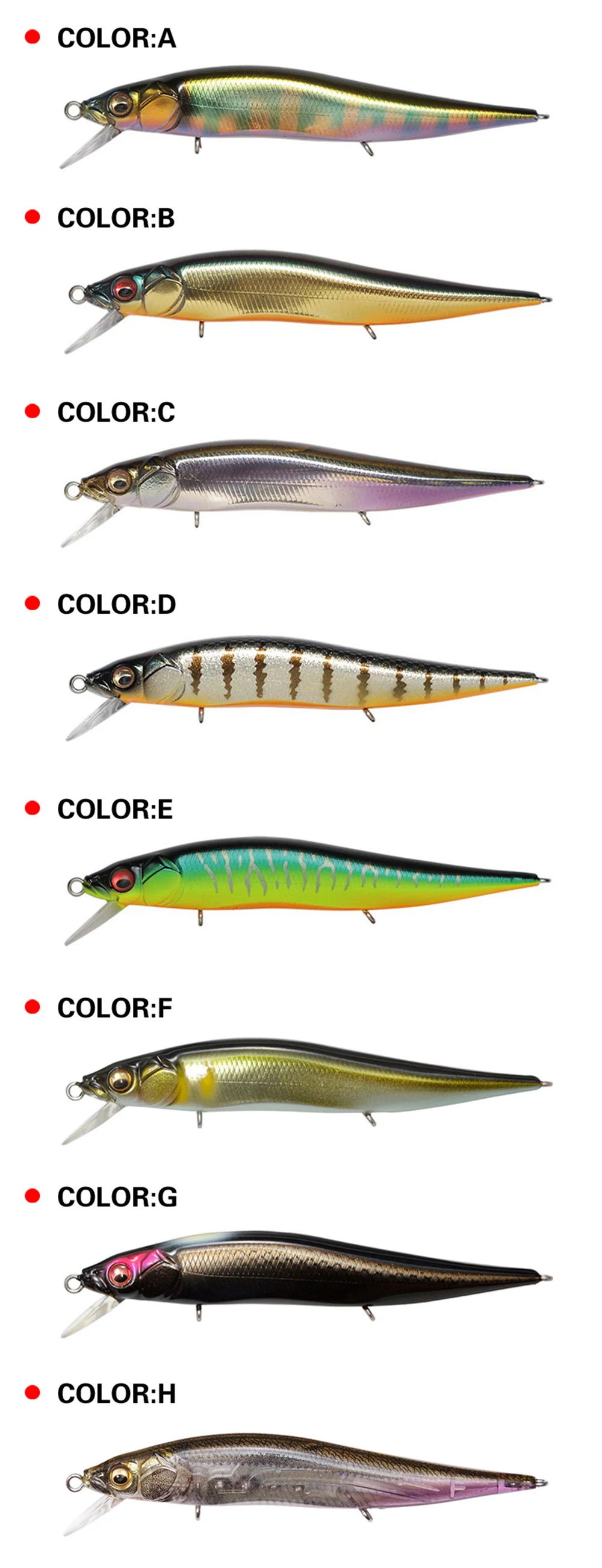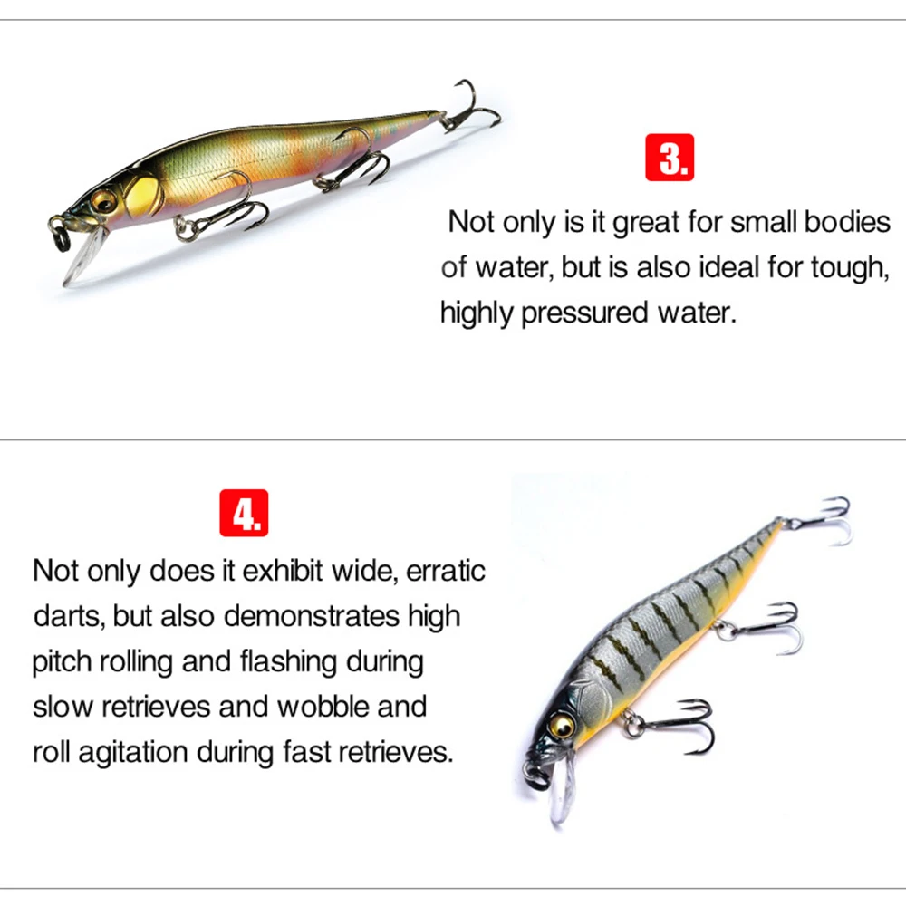 3.The baits have lifelike painting and vivid 3D eyes ,they make the bait looks like real fish swimming in the water during fishing.