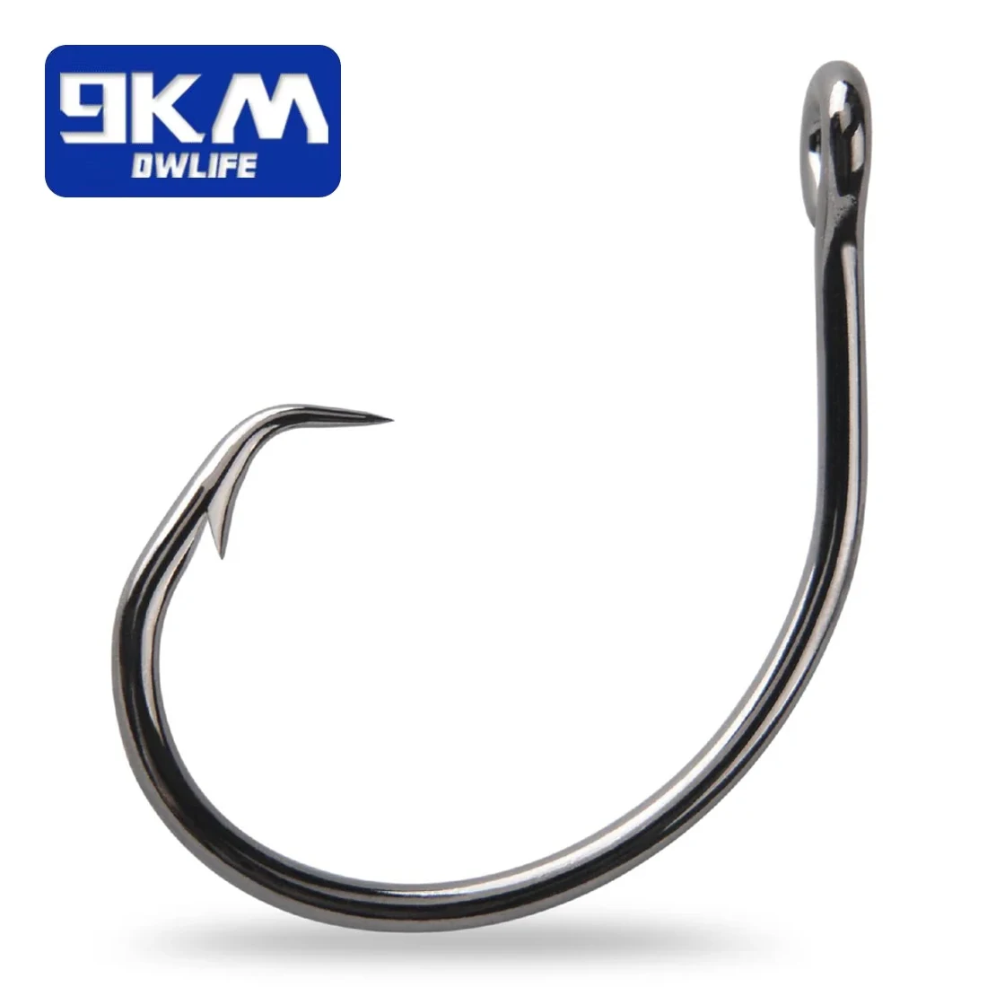 Los anzuelos de pesca circular de 9 km están hechos de acero con alto contenido de carbono, que tiene mayor resistencia y mejor resistencia a la corrosión.