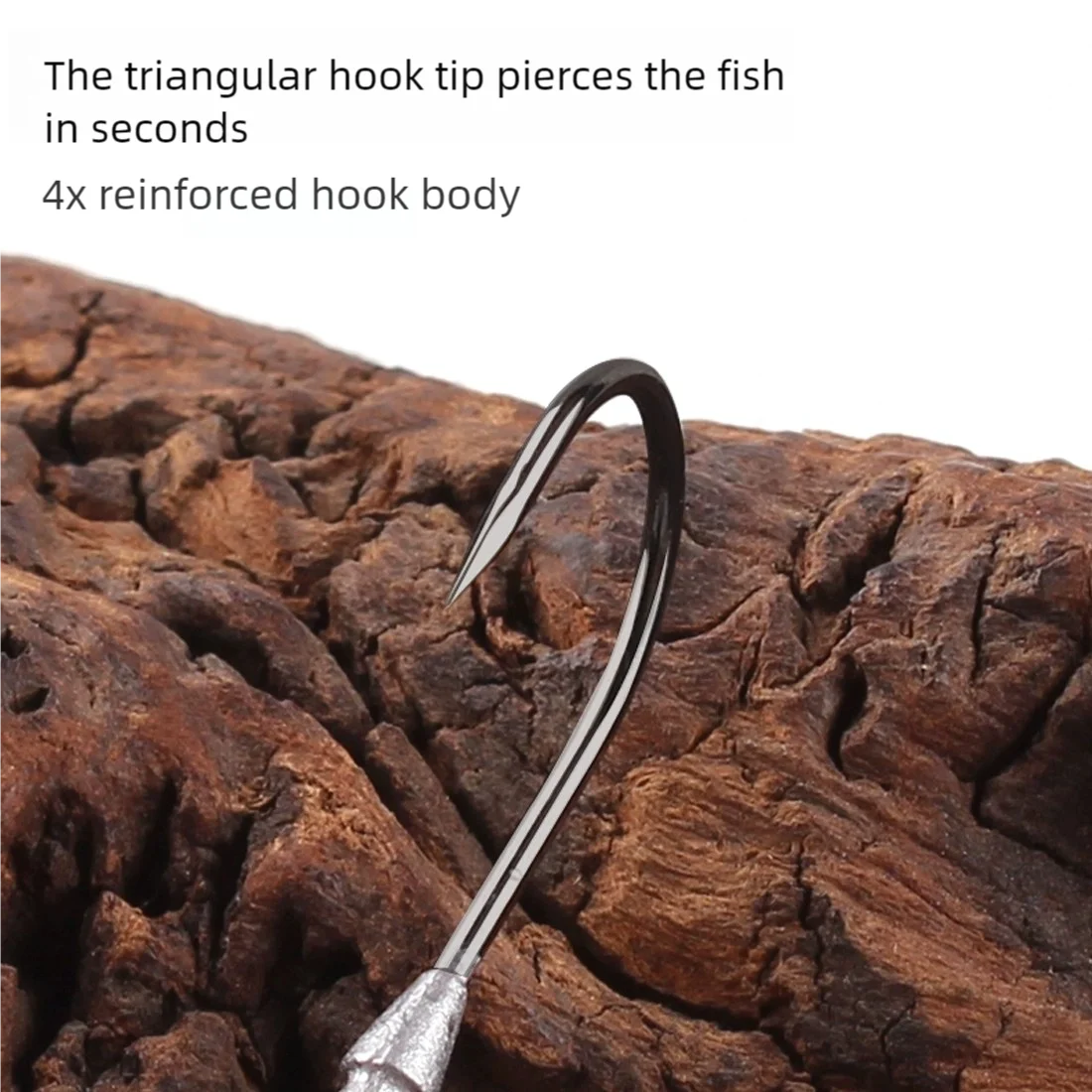 El gancho está hecho de acero con alto contenido de carbono de alta calidad.Gancho de punta súper fuerte.El gancho de vástago permite a los pescadores correr sin malezas.