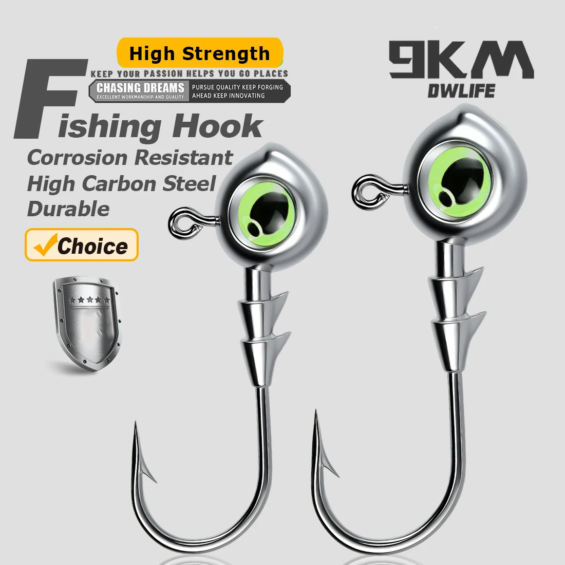El cabezal Jig permite a los pescadores montar plástico blando con puntos de gancho con texto para una exhibición completamente libre de malas hierbas.No se enredará en malezas o rocas.