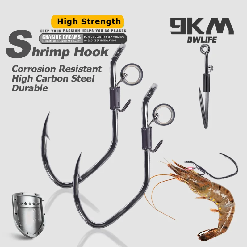 El anzuelo está inteligentemente diseñado para sujetarse de forma segura a las cáscaras de los camarones sin perforarlos ni dañarlos, lo que garantiza que permanezcan con la máxima vitalidad en el agua por más tiempo, haciéndolos más atractivos para los peces más grandes.