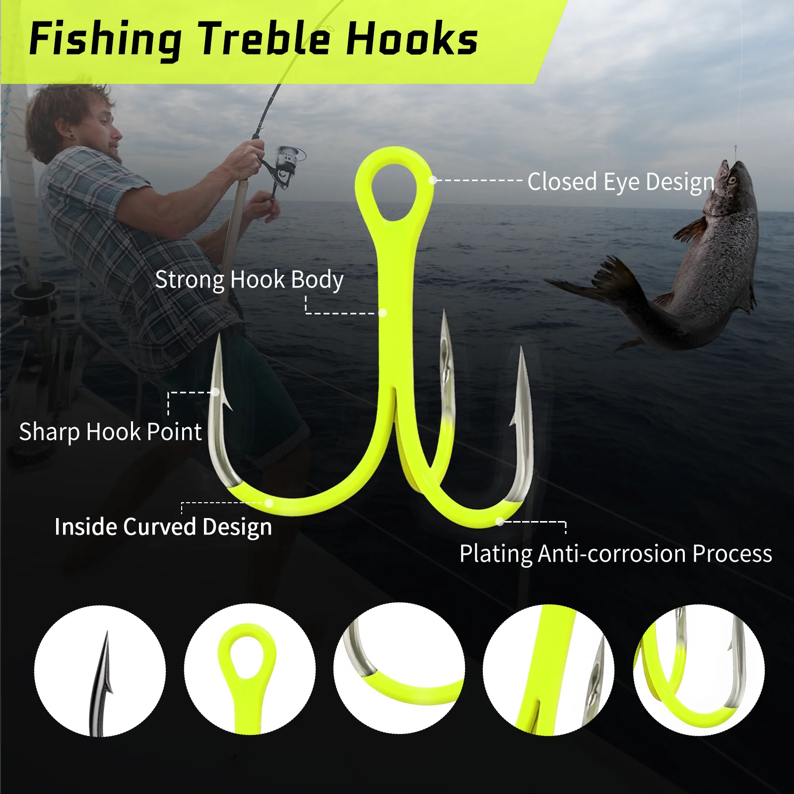 Los anzuelos triples están desarrollados para aplicaciones profundas de agua dulce para permitir a los pescadores pescar una amplia gama de condiciones de poca luz, especialmente aguas profundas y oscuras, lo que garantiza que las especies de depredadores puedan detectar el señuelo o el cebo.