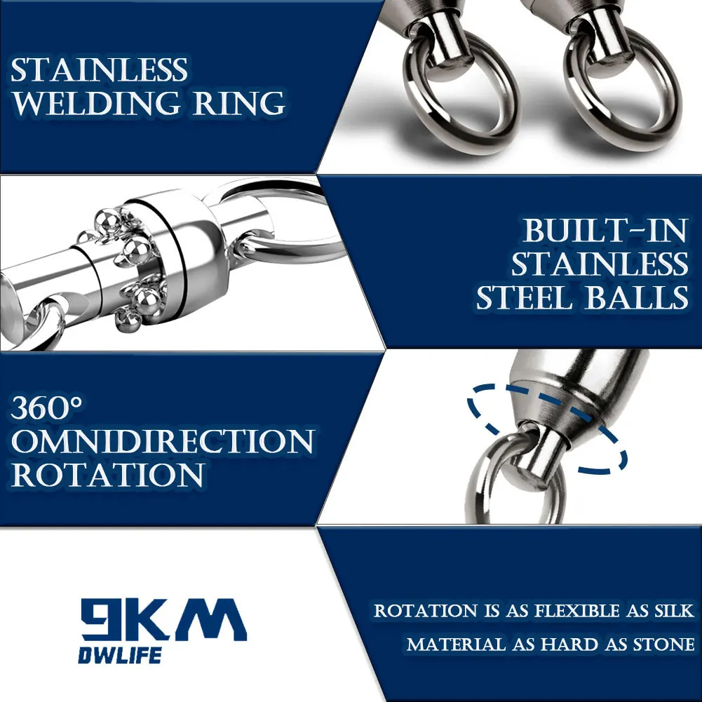 9KM 10 Uds rodamiento de bolas pesca giratorio conector de acero inoxidable pesca en agua dulce y salada para curricán