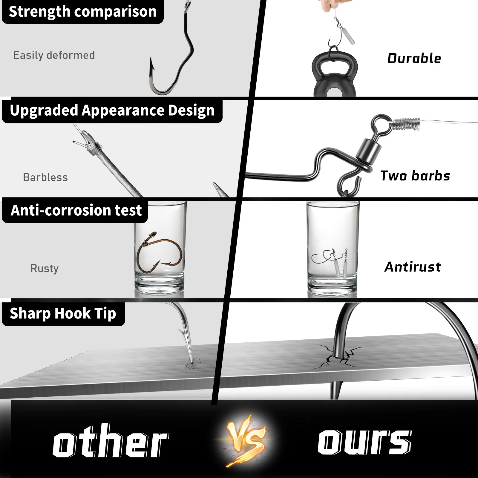 Material: acero con alto contenido de carbono con revestimiento de níquel equipó estos ganchos de gusano con alta resistencia y resistencia a la corrosión.