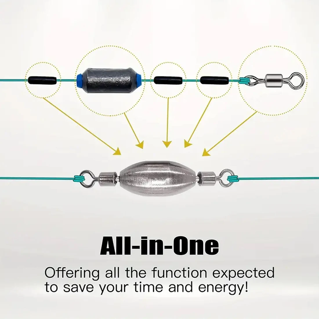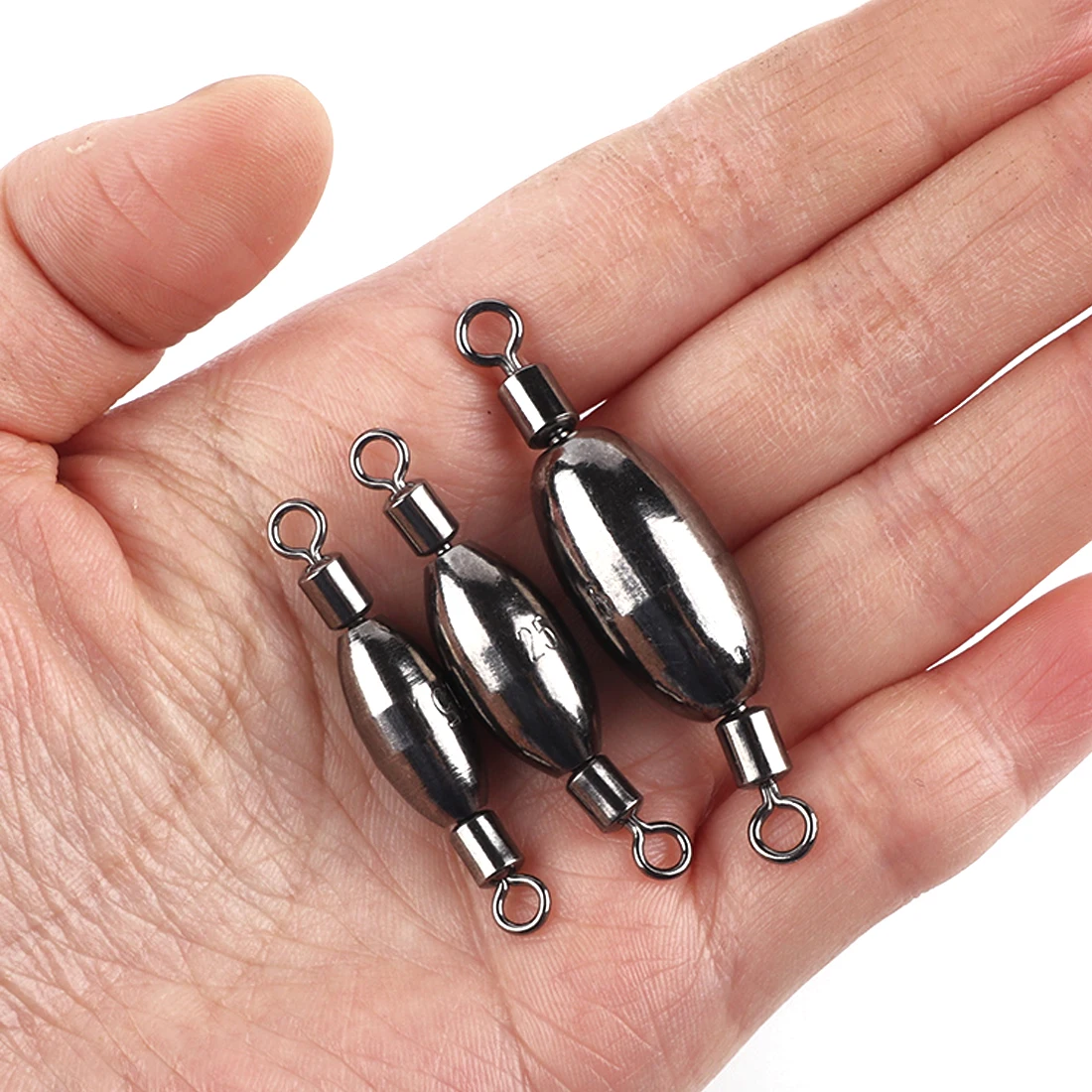 Una forma algo más alargada ayuda a que los pesos de pesca se hundan más rápido. La superficie lisa y el diseño aerodinámico garantizarán que los pesos de pesca sean resistentes a la corrosión.