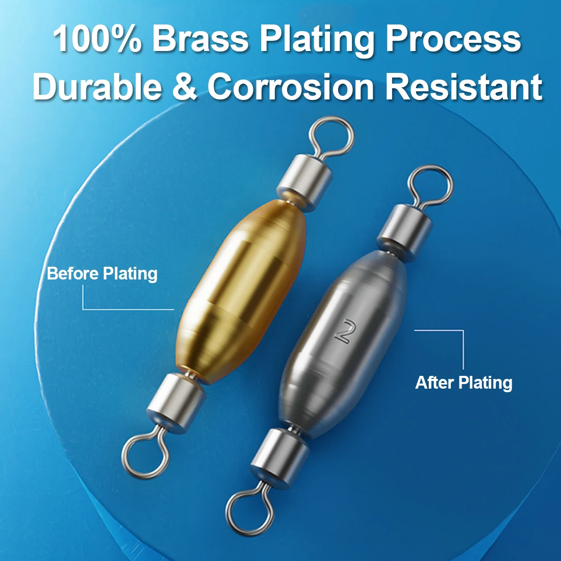 Hechas de latón de alta calidad, las plomos de pesca son resistentes y duraderas.En comparación con las tradicionales pesas de pesca con plomo, este tipo de plomo no contiene plomo.