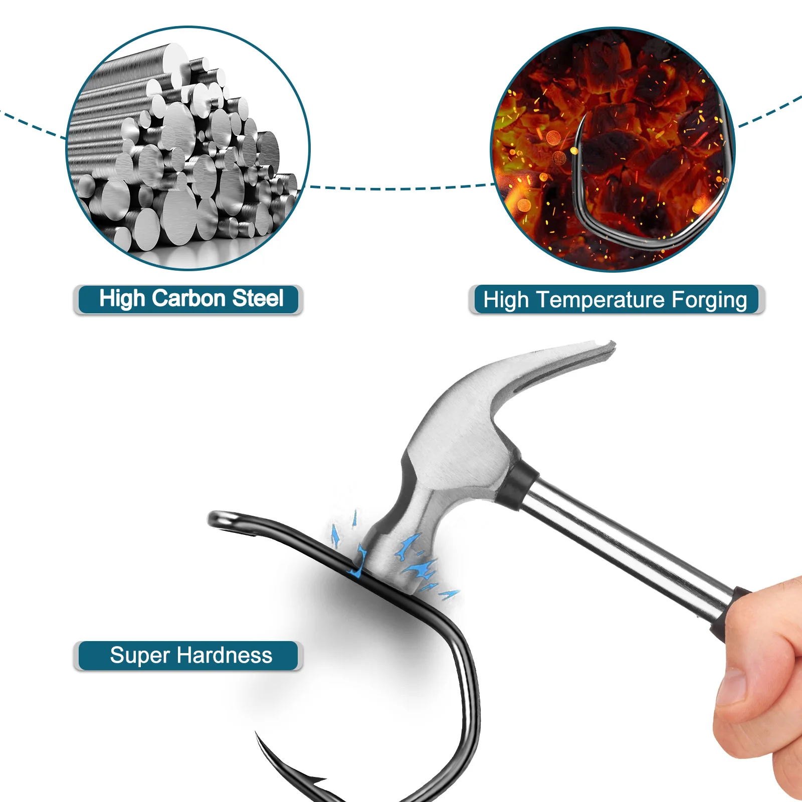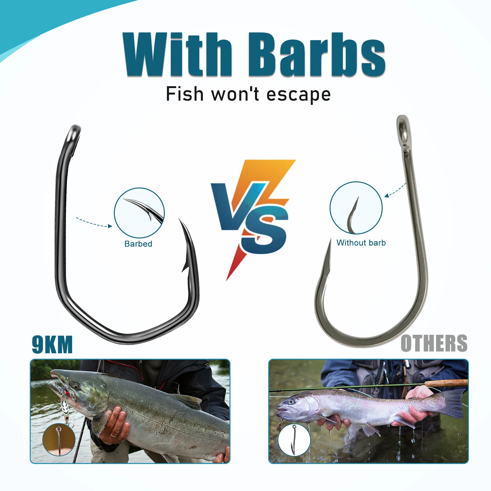 9KM 50 ~ 200 Uds. Anzuelos de pesca afilados con revestimiento de PTFE anzuelos de carpa con púas de pesca de alto carbono, accesorios de aparejos de pesca
