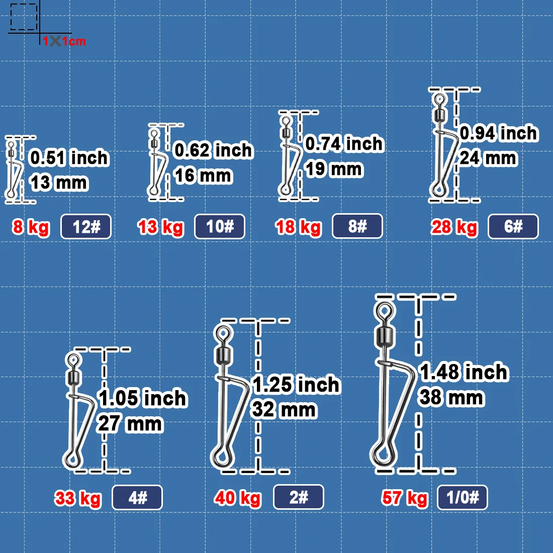 Los giratorios de pesca con bloqueo y desbloqueo rápido, cambie los señuelos y los líderes de pesca rápidamente.Anillo de soldadura sólido conectado suavemente con hilo de pescar.