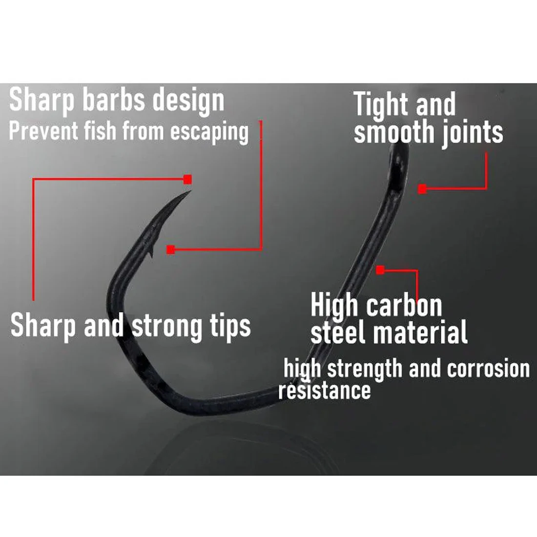Crafted from fine steel, it will satisfy the challenging fish of big fish that your small hooks boogie for. The hook body avoids being straightened during the fight with the fish.