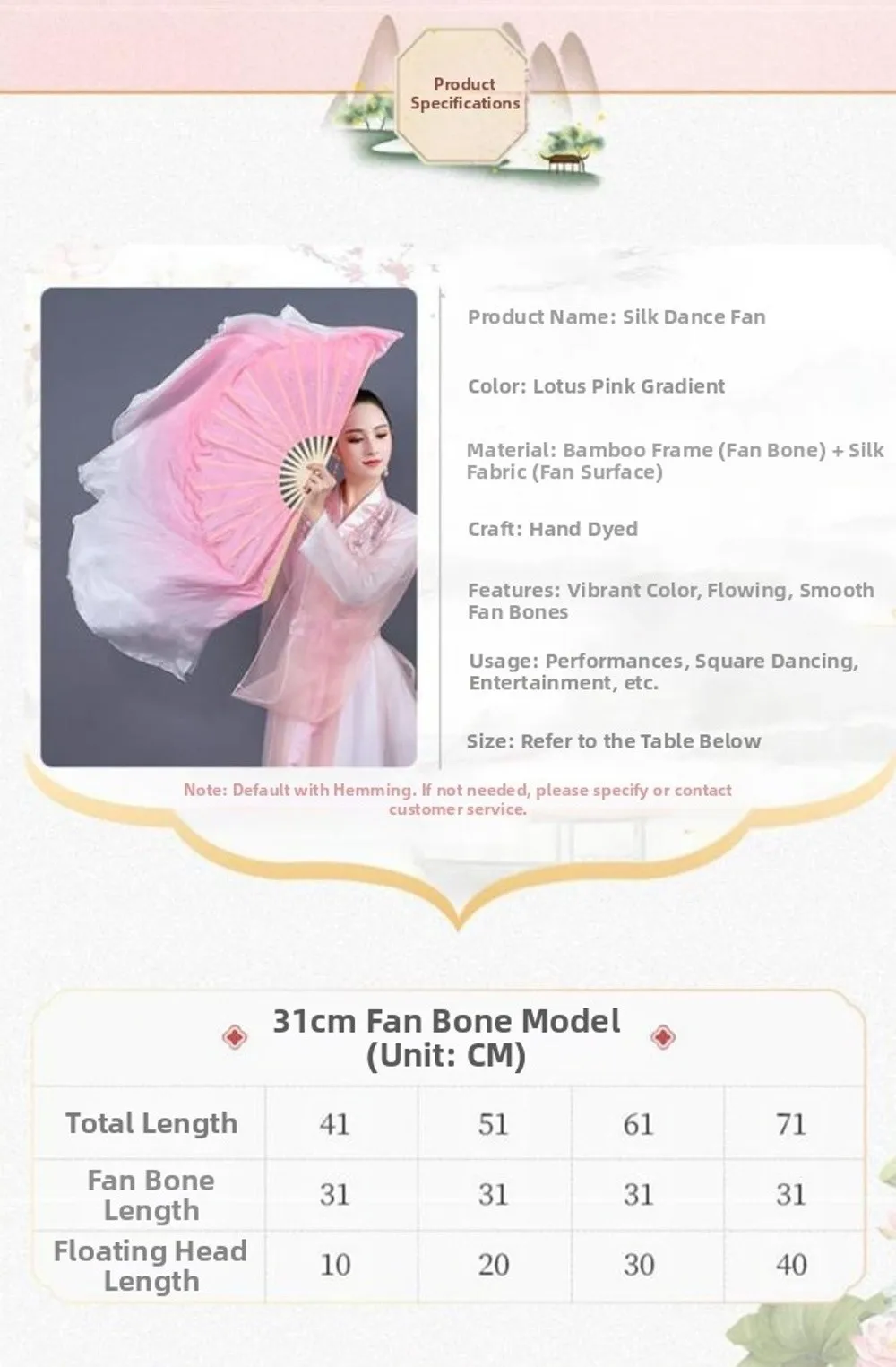 Fan Cloth Length:41/51cm(16.14/20.08in) in Total