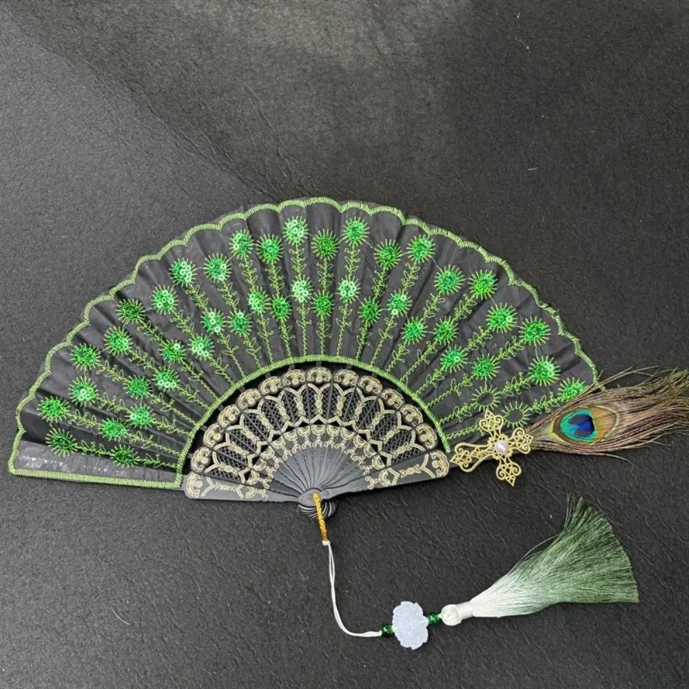 Nombre del artículo: Abanico plegable de encaje con lentejuelas bordadas