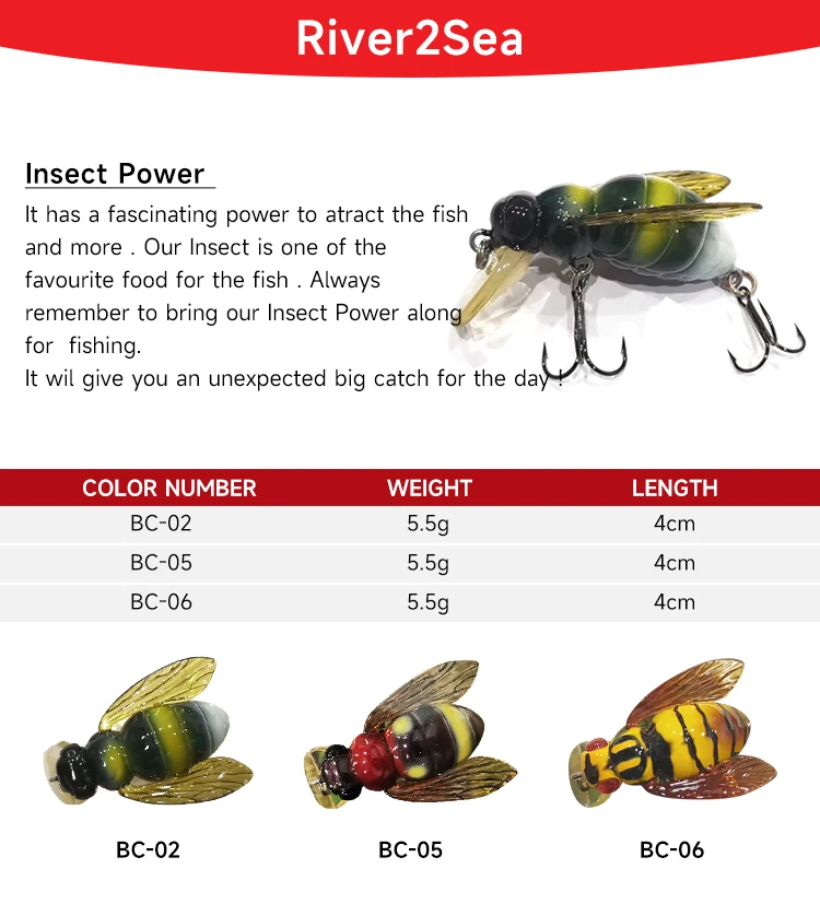 Abeja de buceo American River2sea, sistema de agua Mino flotante, insectos Makou, señuelo biónico, cebo falso