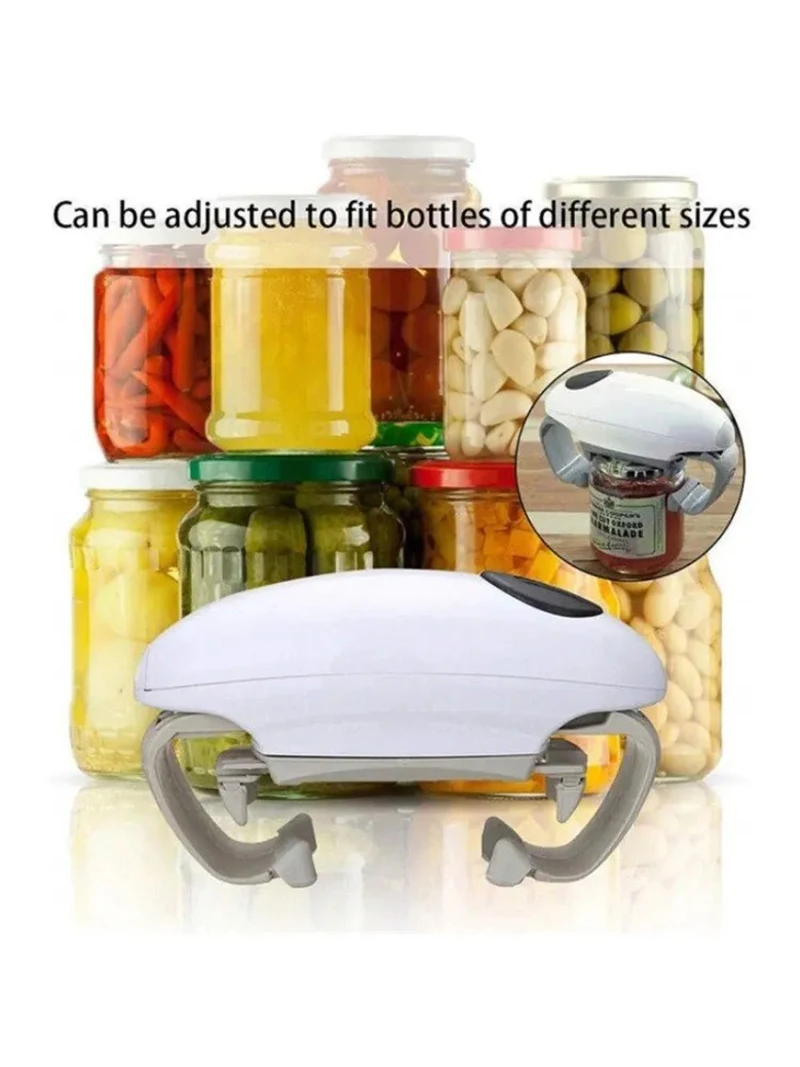 Fácil de usar: colóquelo sobre la tapa y abra el frasco de forma completamente automática con solo tocar un botón.La tapa también se fija con un imán para evitar confusiones.