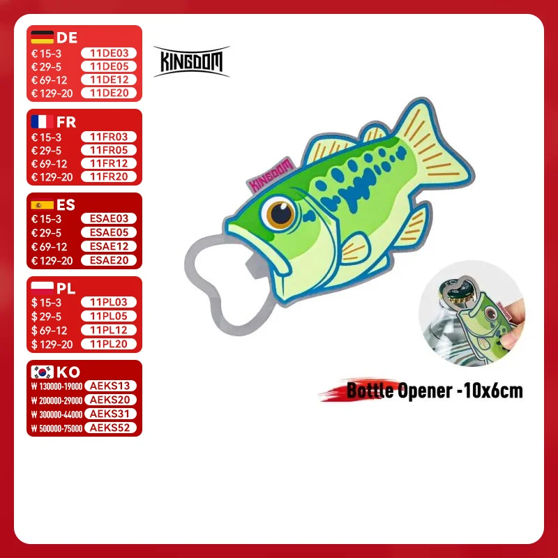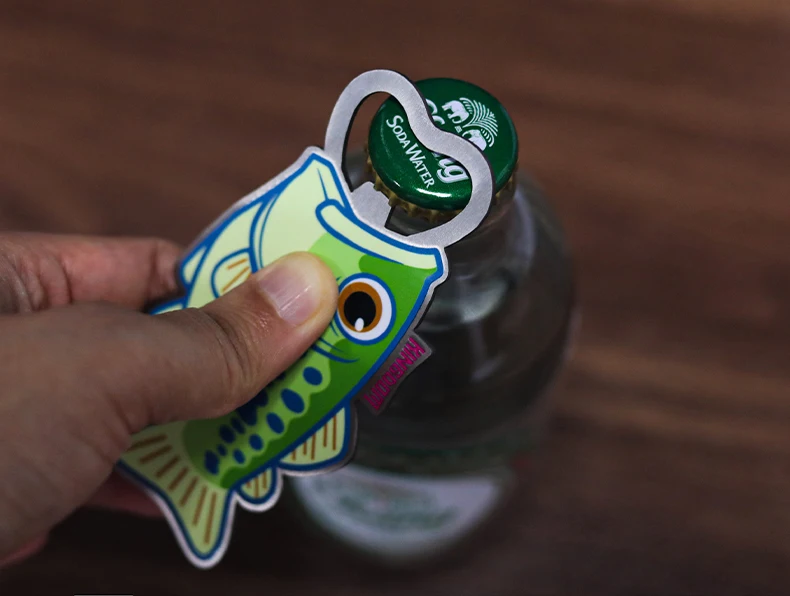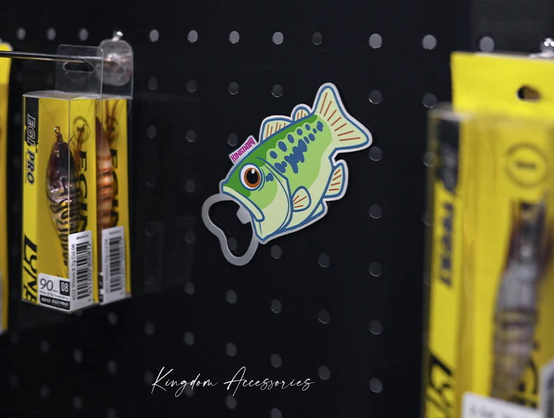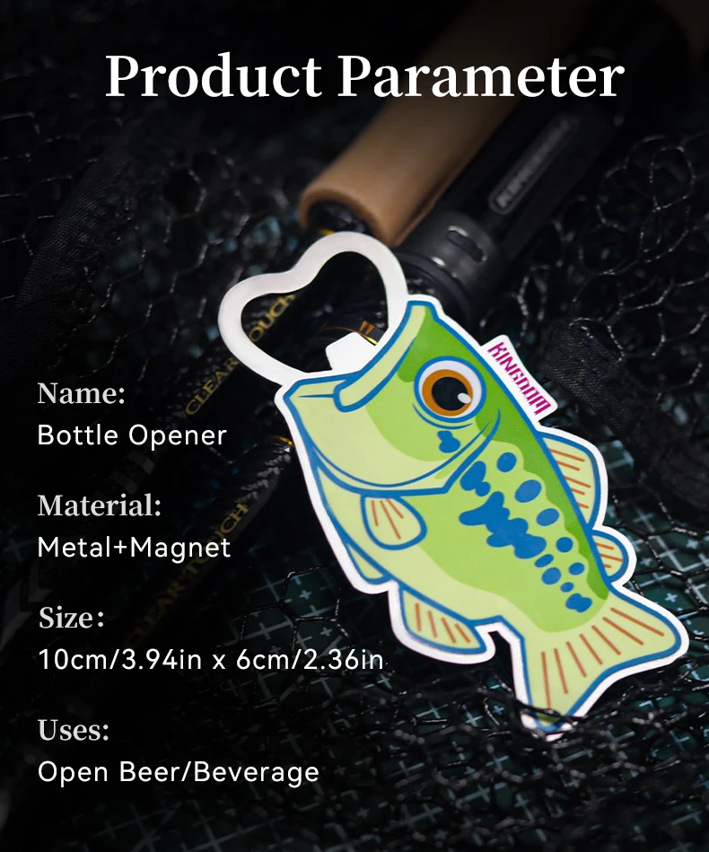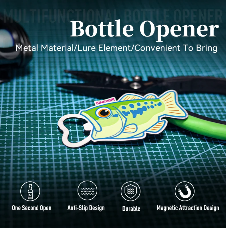 Abridor de botellas Kingdom, diseño magnético, 10x6cm, Material metálico antideslizante, abridor de botellas, imán para nevera, accesorio de pesca