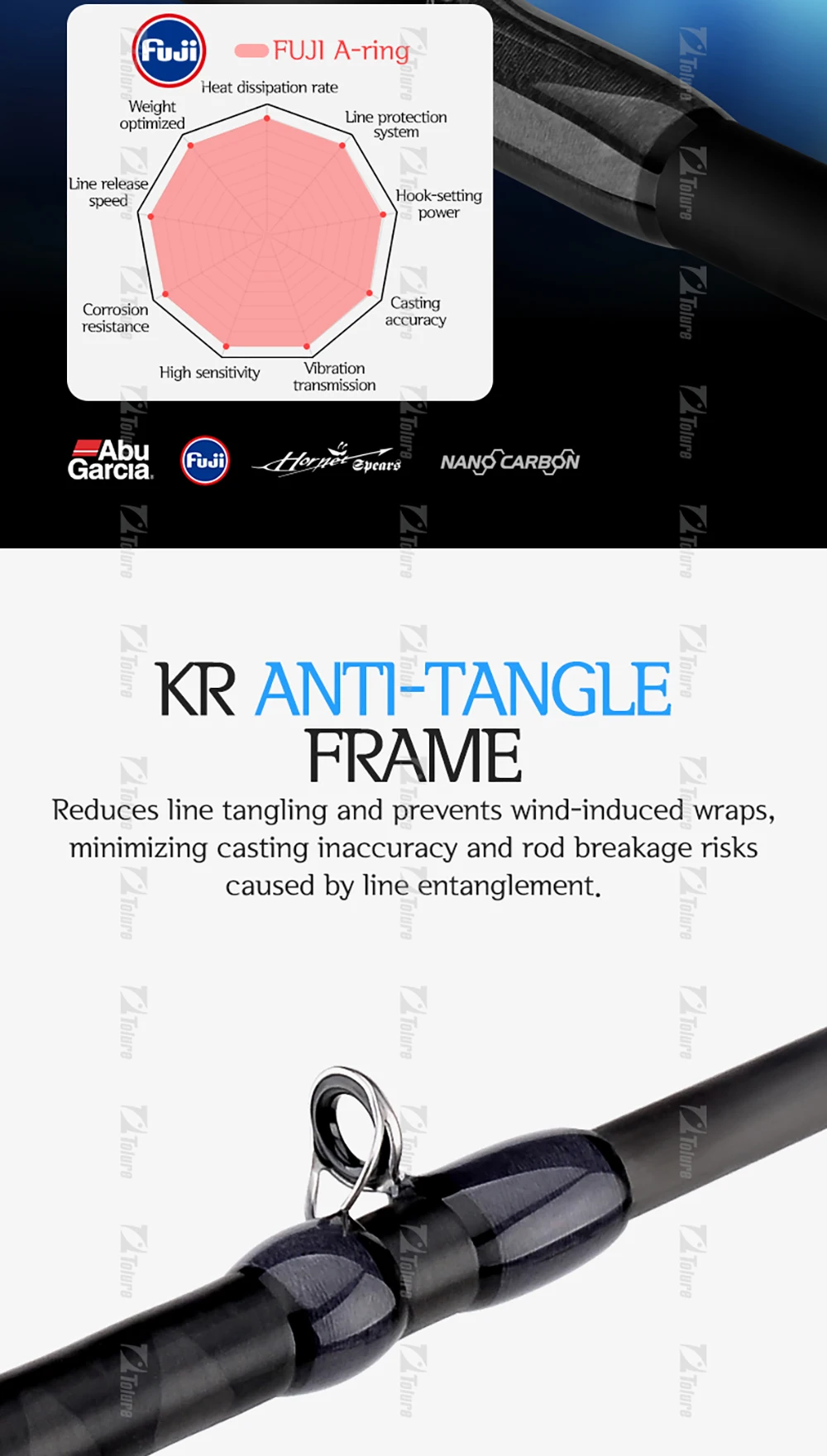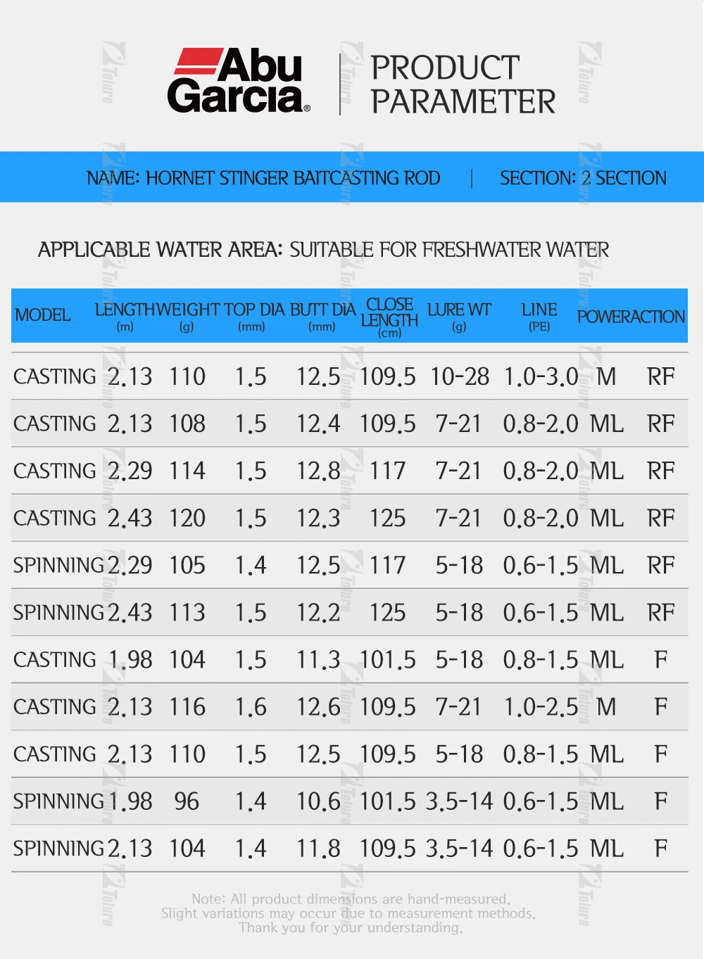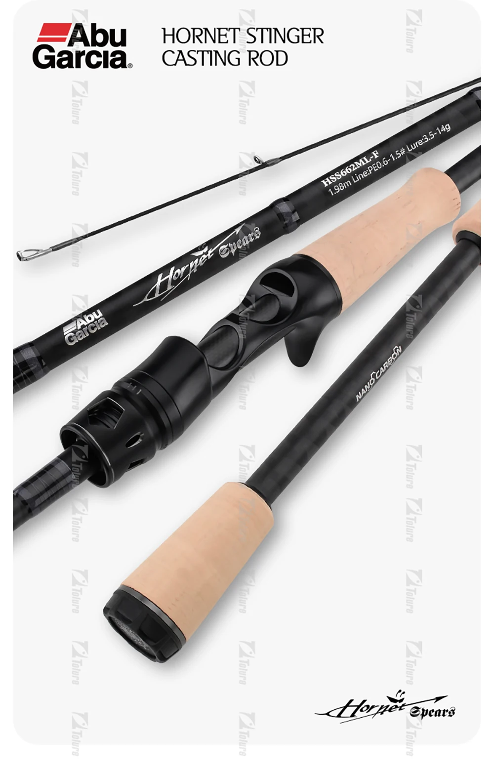 ABU Garcia Original Hornet Spears Spining/Casting 2 secciones caña de pescar 1,98 m-2,43 m Fuji A-Guide Ring/siento de carrete Nano Carbon