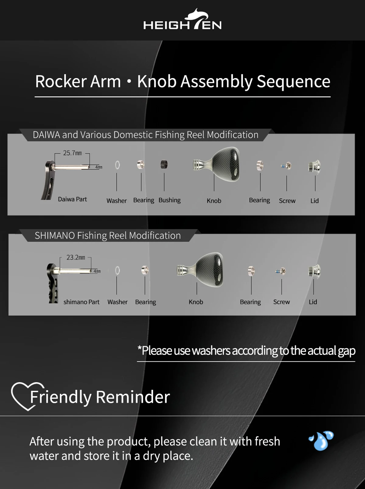 Accesorio Mod de carrete de pesca HIGHTEN, eje de mango único, perilla de fibra de carbono de 65 y 75mm con señuelo de 35mm de diámetro, modificación de pesca Ac