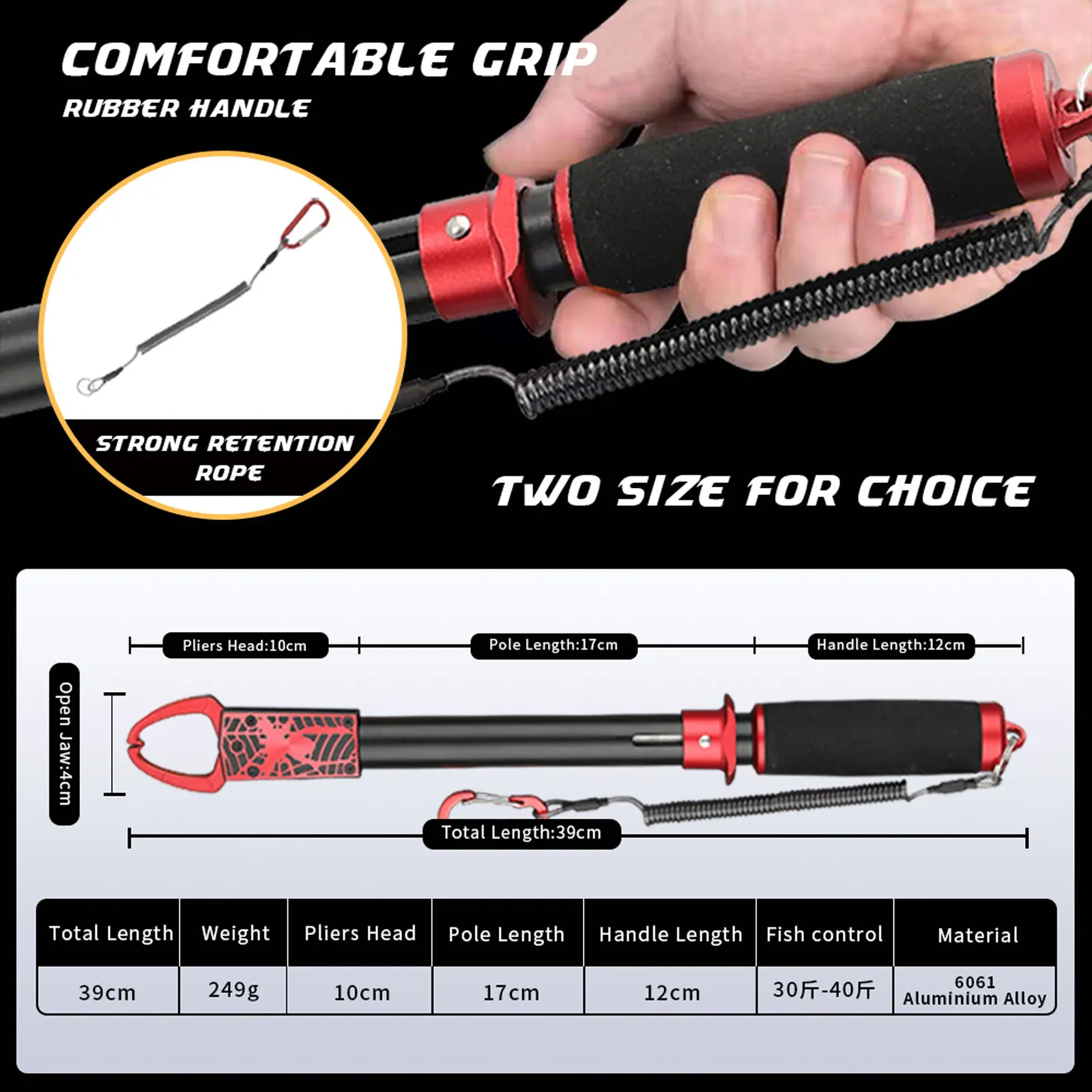 Accesorios de agarre de pesca extendidos, aparejos multifuncionales de aluminio, agua salada, 40kg, controlador de peces, abrazadera de captura ajustable, araña