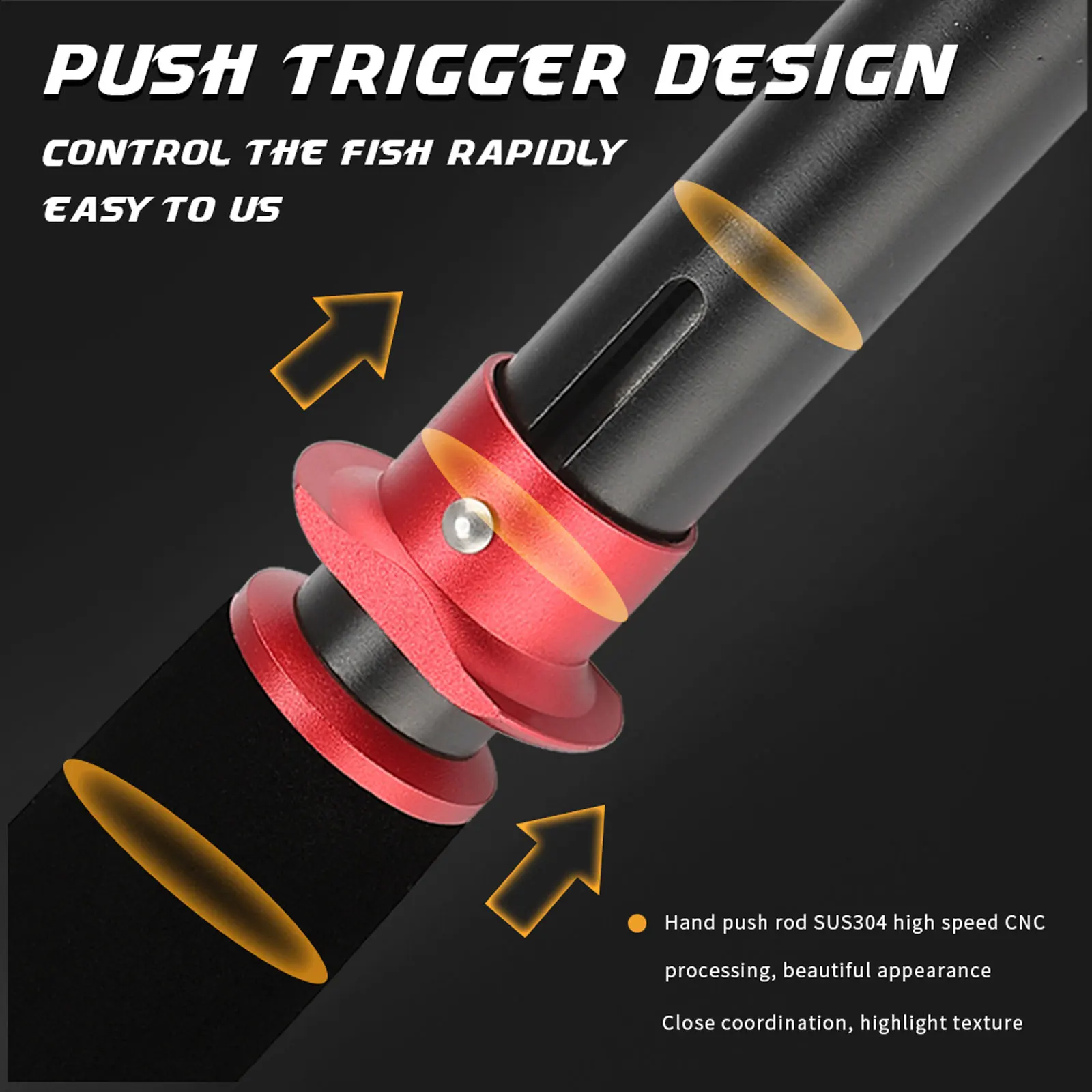 1. Diseño Tigger de empuje: potencia de liberación rotativa de 360 grados, ahorro de trabajo y captura de peces rápidamente;