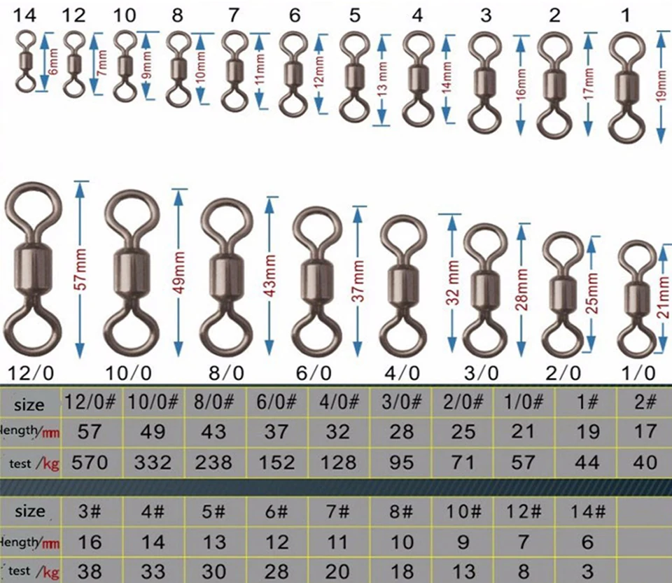 Accesorios de aparejos de pesca de anillo giratorio americano, conector profesional excelente de cobre, 100 unids/lote, 8