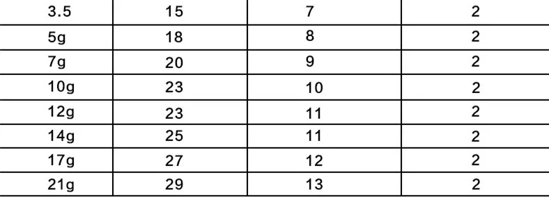 10g 12g 14g 17g 3 piezas/bolsa