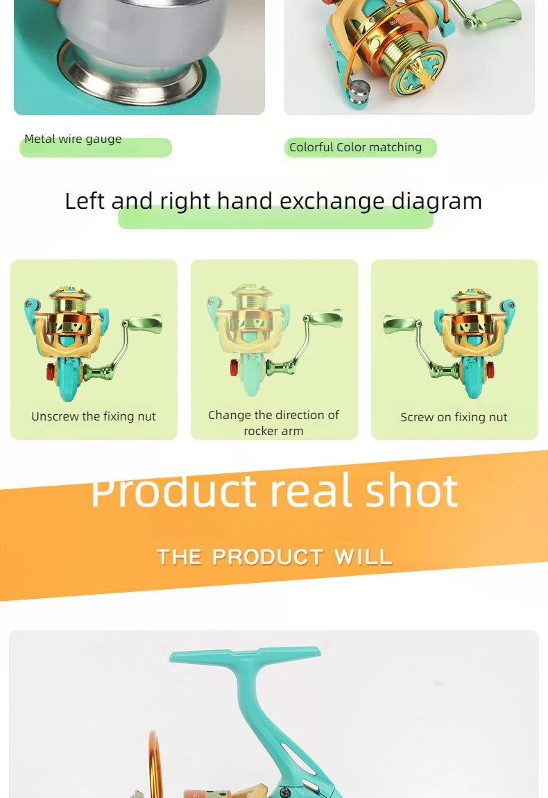 Carrete de pesca giratorio, accesorios, enrollador de bobina de mar, carrete de todo de perfil alto, señuelo, todos los señuelos, aparejos de carpa, herramientas de cebo de molinete