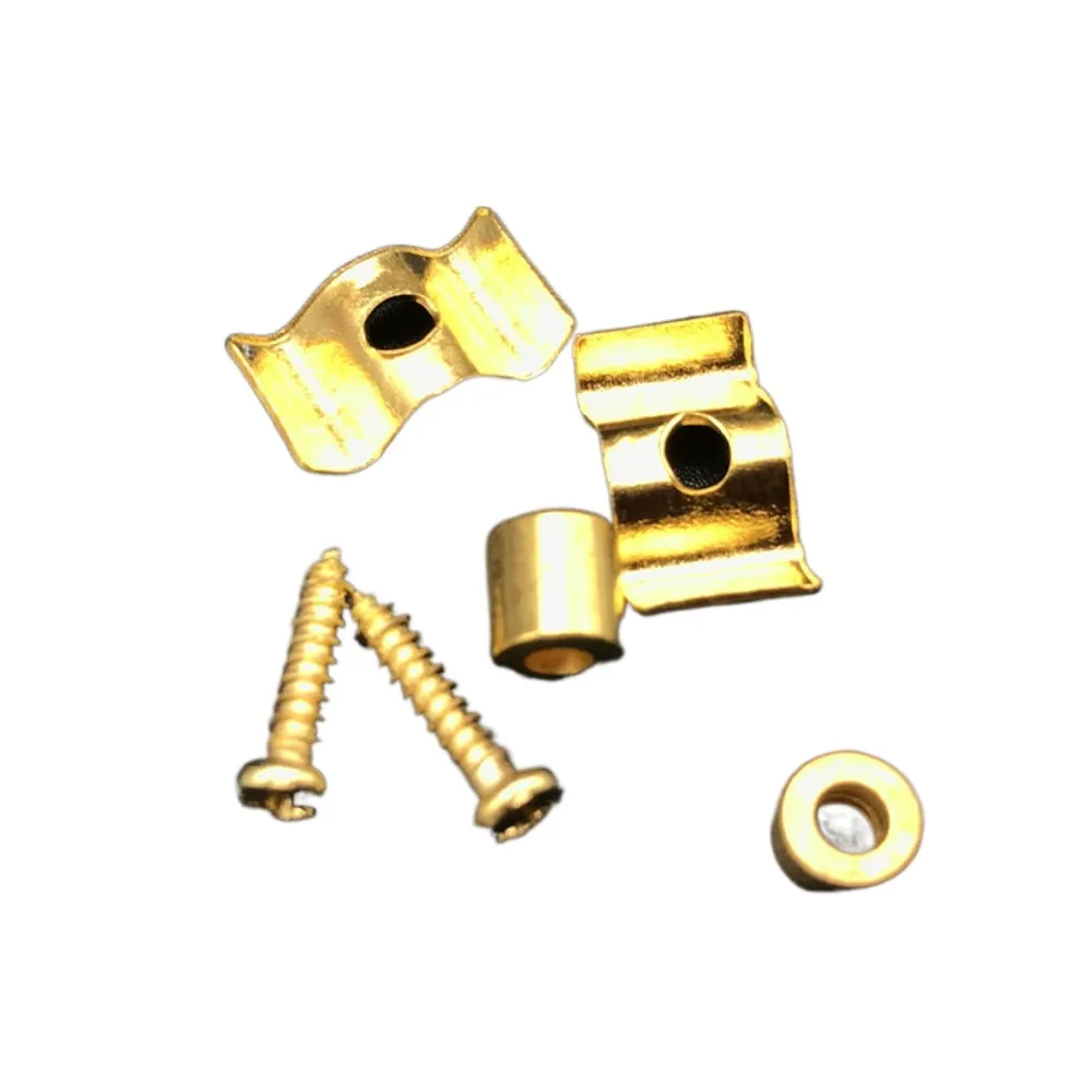Package includes:1set String Retainers A pair of roller style guitar string retainers with screws.Two on each tree and stake design, retain the string perfectly.Suitable for electric guitar.Old or damaged string retainers replacement parts