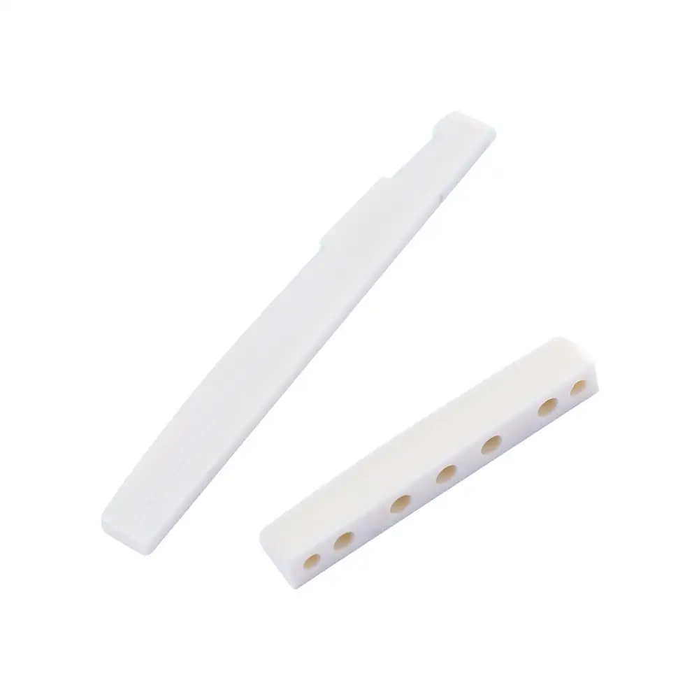 Material: Plástico Color: Blanco/Negro Sillín de guitarra: Aprox. 72mmX3mmX8. Tuerca de guitarra de 5 mm: Aprox. 43mmX6mmx8. Pasadores de guitarra de 5 mm: la longitud total es 1. 175" (29. 75 mm) El ancho de la ranura es 0. 075" (1. 93 mm) El paquete incluye: 1 sillín, 1 tuerca, 6 pasadores de puente Característica: Portátil y fácil de usar Adecuado para cualquier marca de guitarra acústica