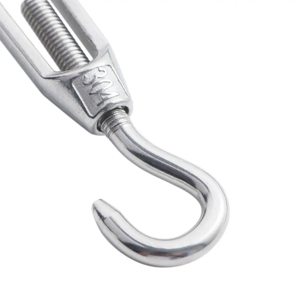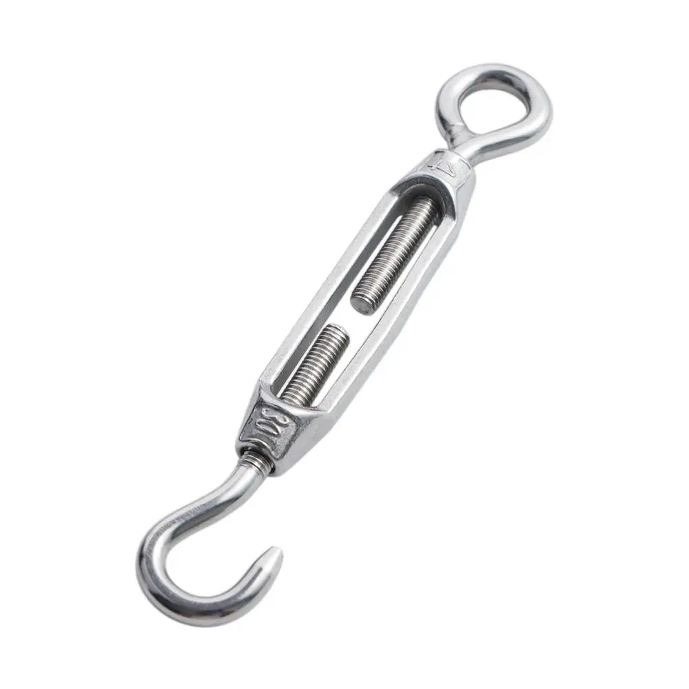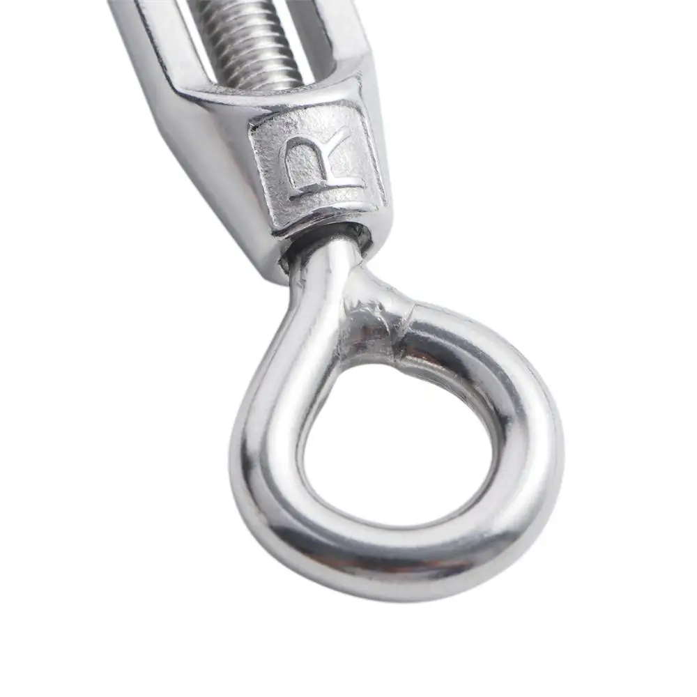 Material: acero inoxidable 304 Distancia de viaje libre: 43mm Color: plata Peso: 50g Paquete incluido: 1 gancho y tensor de ojo Nota: la luz y las diferentes pantallas pueden hacer que el color del artículo en la imagen sea un poco diferente del real. El error de medición permitido es +/- 1-3cm.