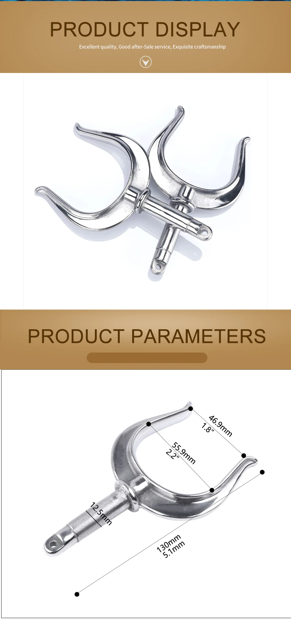 Características: -Hecho de acero inoxidable, duradero y atractivo. -Fácil de instalar, duradero y resistente a la corrosión Cara pulida de alta reflexión para un aspecto elegante y para combinar con las embarcacions modernas de hoy Especificaciones: Material: acero inoxidable 306 Acabado superficial: pulido Longitud: 130mm Cantidad: 2 juegos