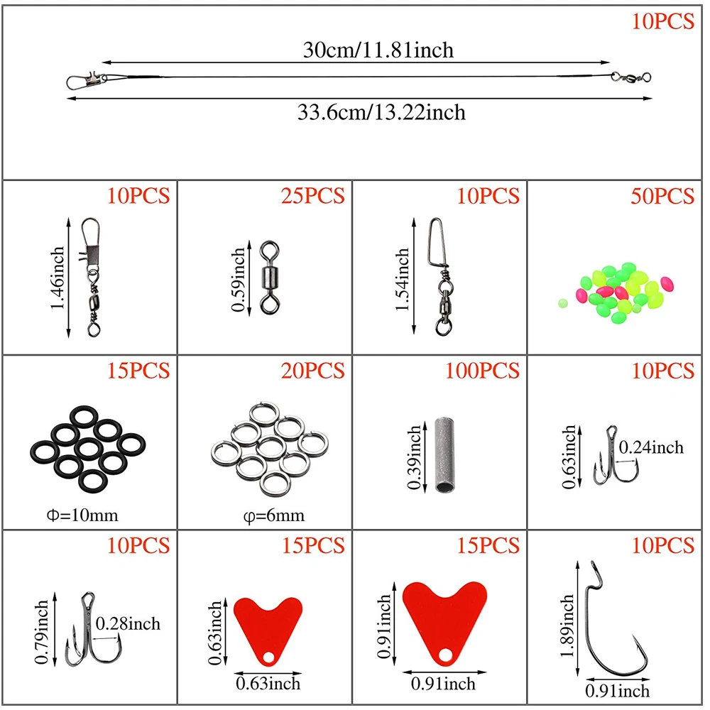 Características del producto: 1. Anticorrosión: Todos los aparejos de pesca están hechos de acero de cartón, ofrecen alta resistencia y tienen una fuerte resistencia a la corrosión en agua salada. 2. Alta sensibilidad: el peso del Volteo de tungsteno es mucho más pequeño y más sensible que el peso del plomo, dándote la oportunidad de sentir más picaduras. 3. Peso ligero y portátil: nuestra caja de aparejos de pesca cabe fácilmente en su caja de asiento de pesca o mochila de pesca, lo que le permite viajar ligeramente a su lugar de pesca favorito y disfrutar de la pesca Especificaciones del producto: Marca: Pesca con sombreado Color: como muestra la imagen Paquete: caja Cantidad: 325 piezas. Paquete: Aparejos de pesca de 325 piezas en una caja