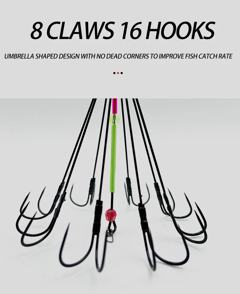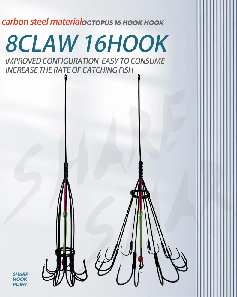 8 garras 16 ganchos cebo de calamar trampa jaula señuelo de pesca jaula pulpo gancho trampa cesta aparejos de pesca