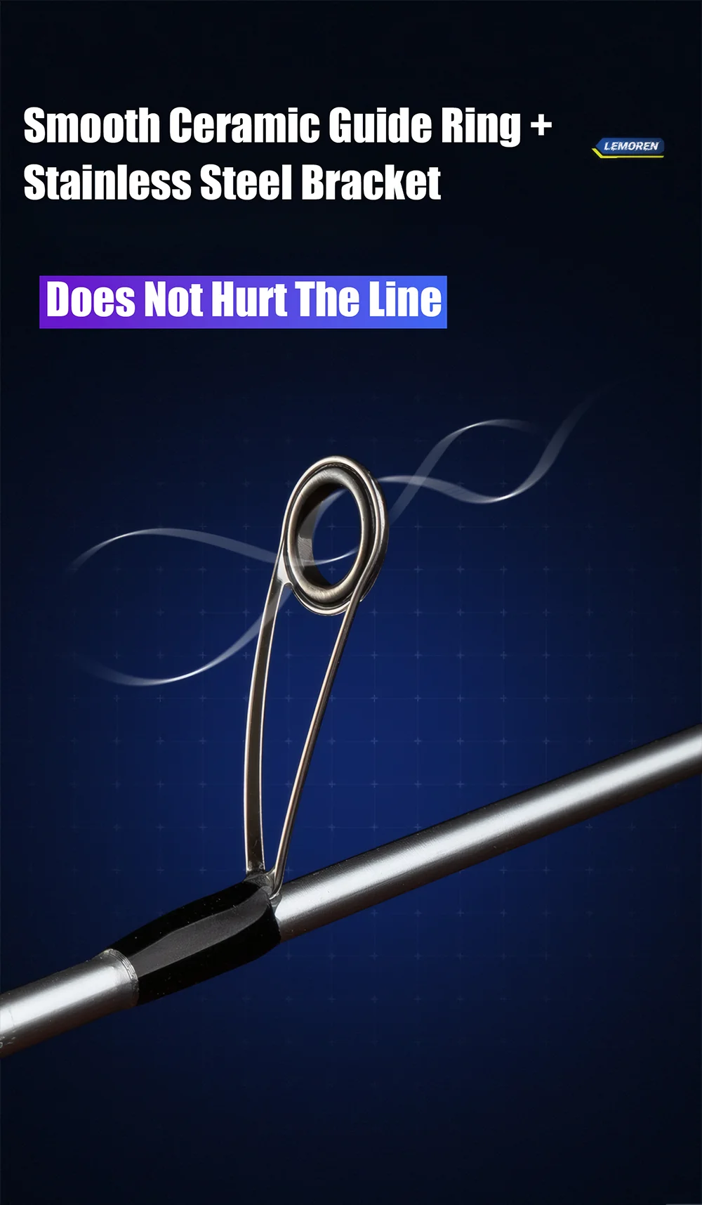 * Material de los anillos guía: Cerámica SIC con soporte de acero inoxidable (no daña el hilo de pescar)