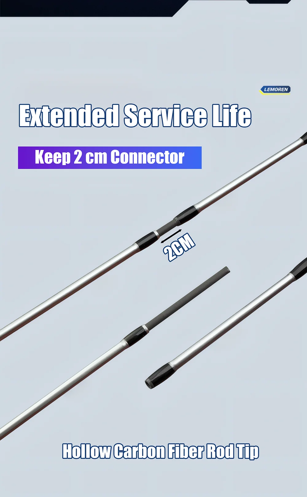 * Material: fibra de carbono 30T (90°, 45°, 0°, Tela de carbono cruzada de 3 direcciones para mejorar la elasticidad y durabilidad de la caña de pescar)